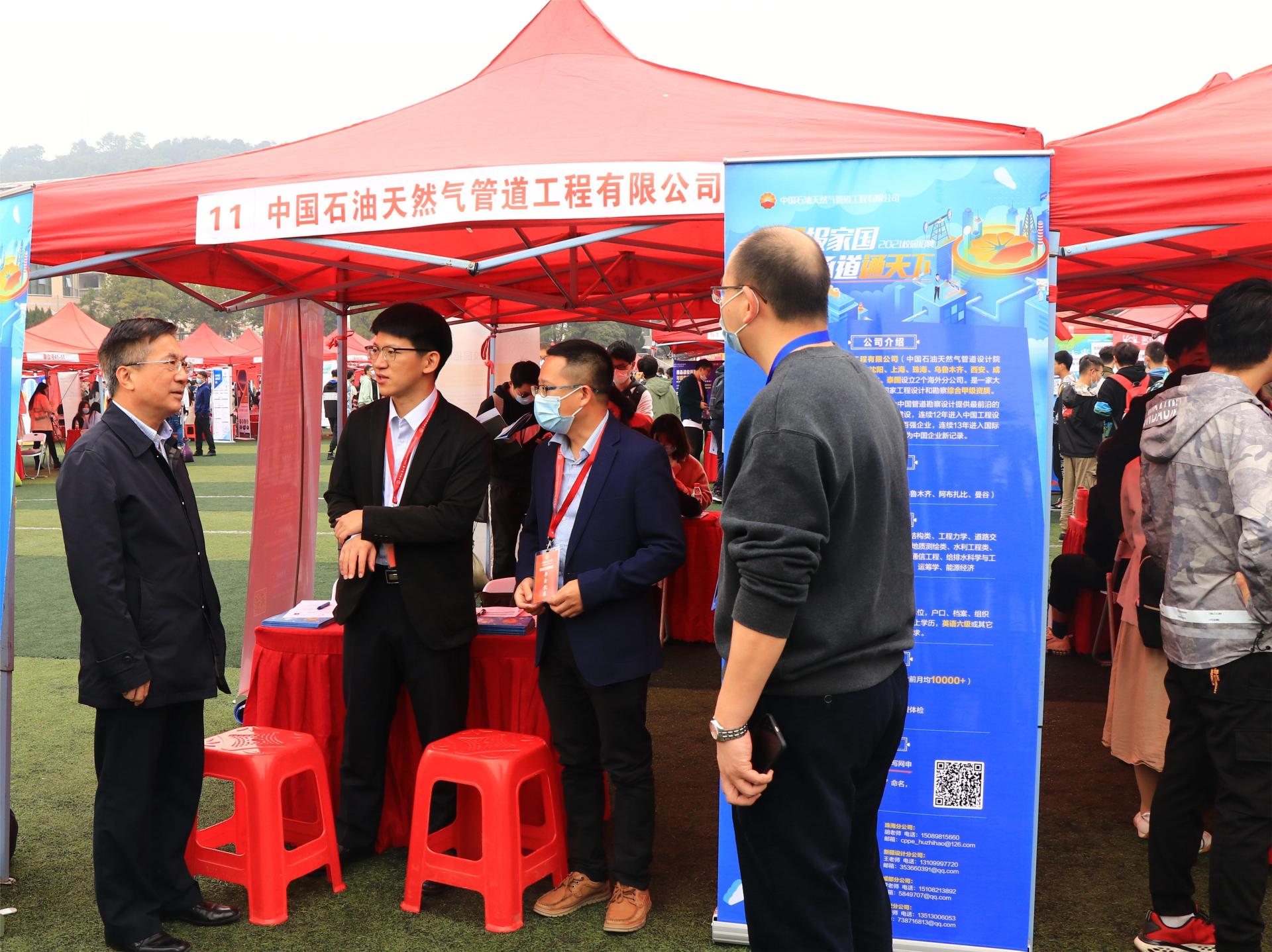 校長王焰新院士在招聘會現場與用人單位交流