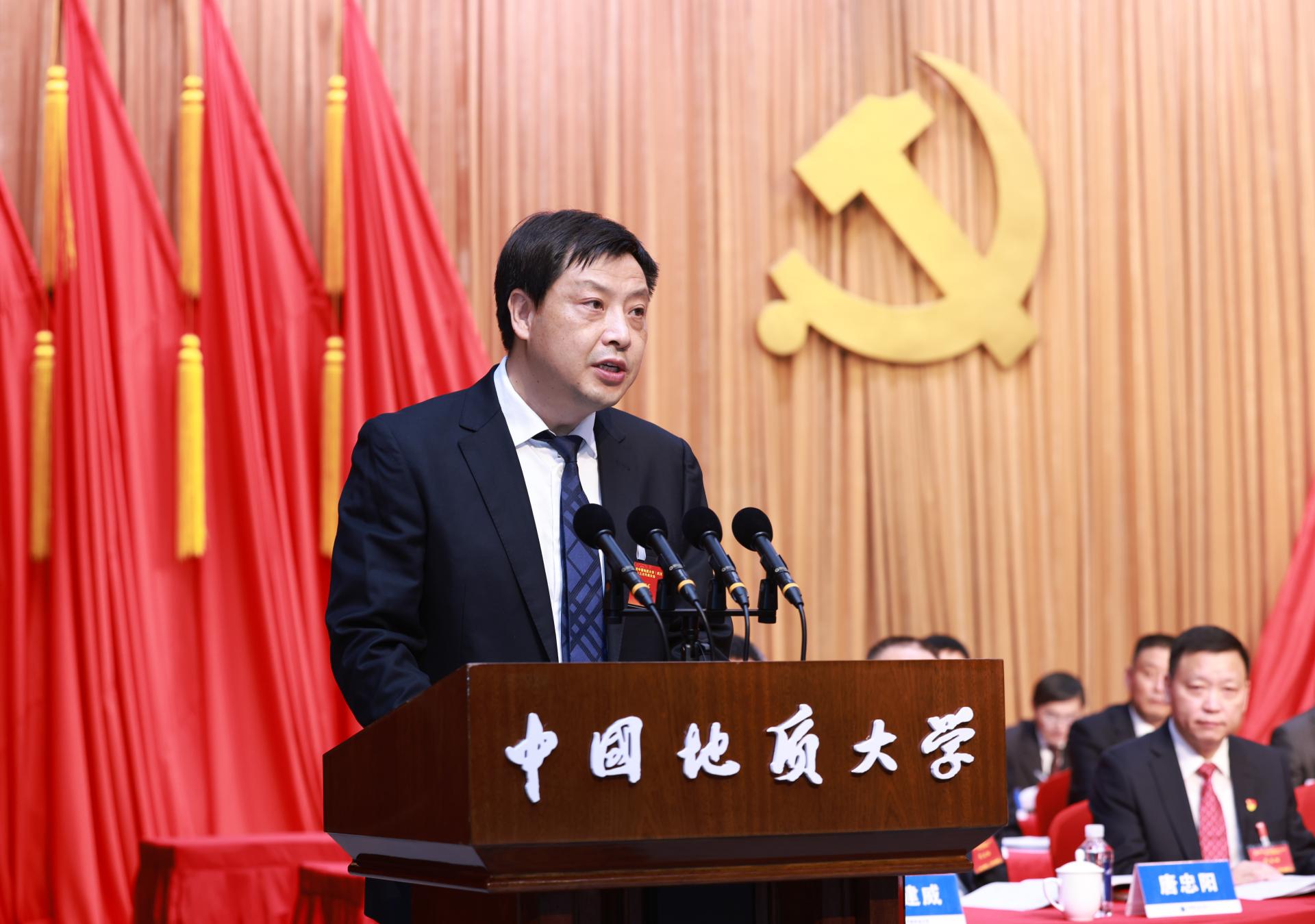 黨委副書(shū)記、校長(zhǎng)王焰新主持中國(guó)共產(chǎn)黨中國(guó)地質(zhì)大學(xué)(武漢)第十三次代表大會(huì)開(kāi)幕式暨第一次全體會(huì)議。