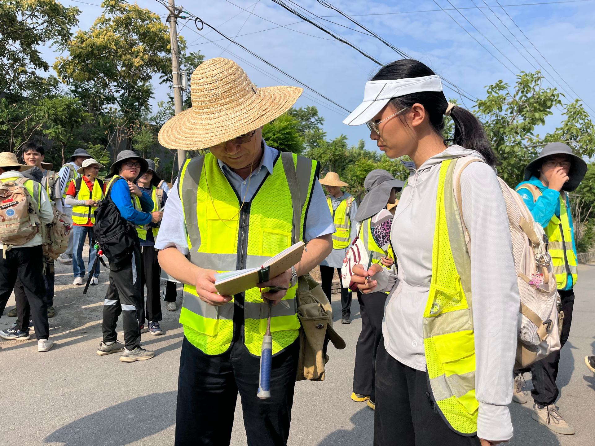 王焰新查看同學(xué)們的野外記錄簿