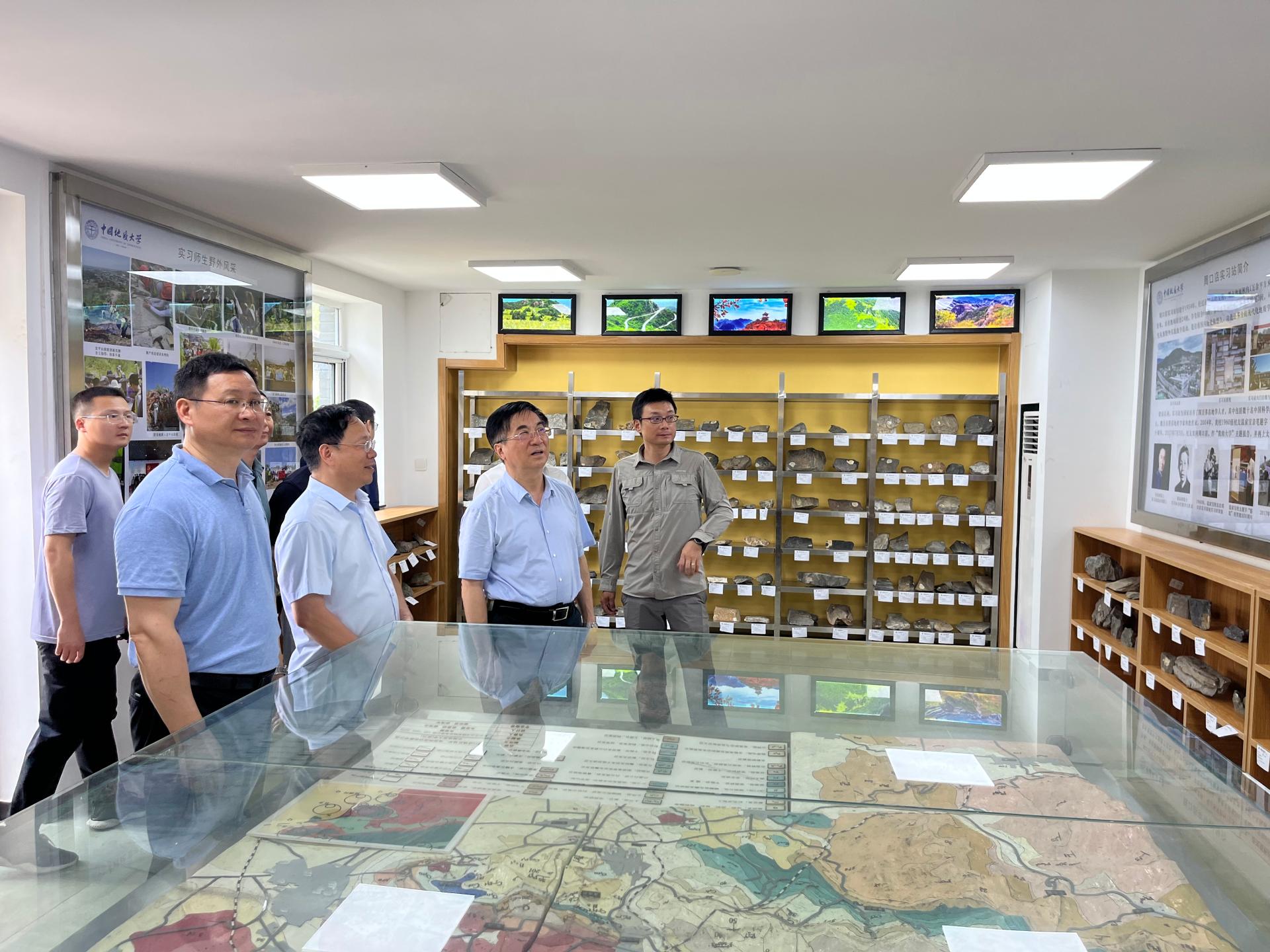 野外路線(xiàn)考察結(jié)束后,王焰新一行回到周口店實(shí)習(xí)站,參觀(guān)了全新改造的標(biāo)本陳列室、巖礦實(shí)驗(yàn)室,走訪(fǎng)了學(xué)生宿舍,與開(kāi)展室內(nèi)整理工作的師生親切交流。他關(guān)心師生在站實(shí)習(xí)情況,叮囑師生要提高安全意識(shí),注意防暑,勉勵(lì)同學(xué)們要努力學(xué)到真本事、錘煉真本領(lǐng)。