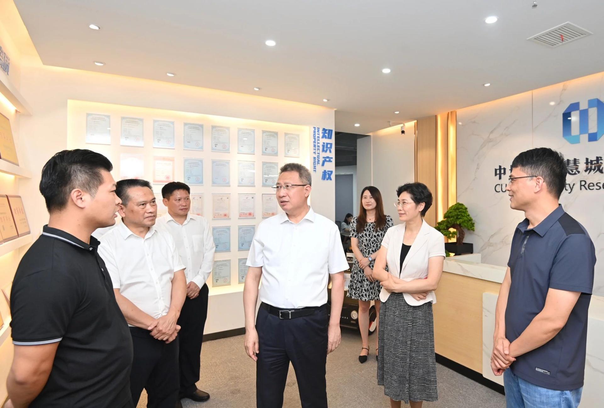 在武漢中地大智慧城市研究院有限公司,郭元強聽取了智慧城市服務體系在住建、水利、國土資源、農業、政務、應急、城管、氣象、地質、生態環境等項目案例匯報。