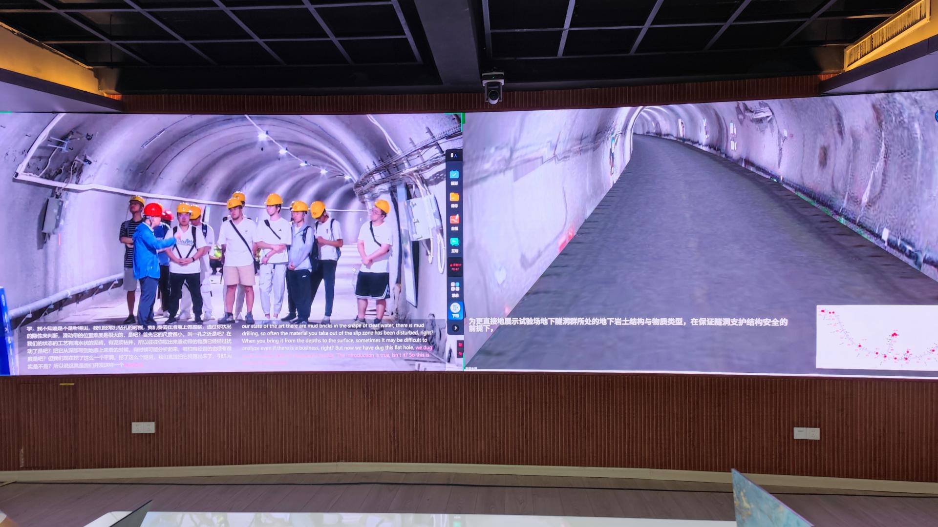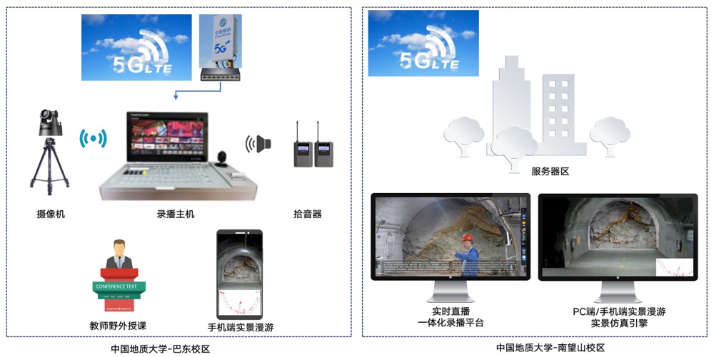 據了解,中國移動在巴東野外綜合試驗場隧道群內建設了5G室內分布系統,構建了靈活、可靠的全連接雙域專用網絡。借助5G技術,現場學生通過手機或PC終端查看實景仿真引擎平臺的巴東試驗場三維模型,在上課過程中漫游、觀察洞內的巖體和相關知識介紹;留校學生通過手機或PC端訪問一體化教學平臺和實景仿真引擎平臺,與現場的師生進行提問、交流互動,通過實景仿真引擎平臺自由漫游近距離觀察隧道群內的基巖、滑帶和滑體。