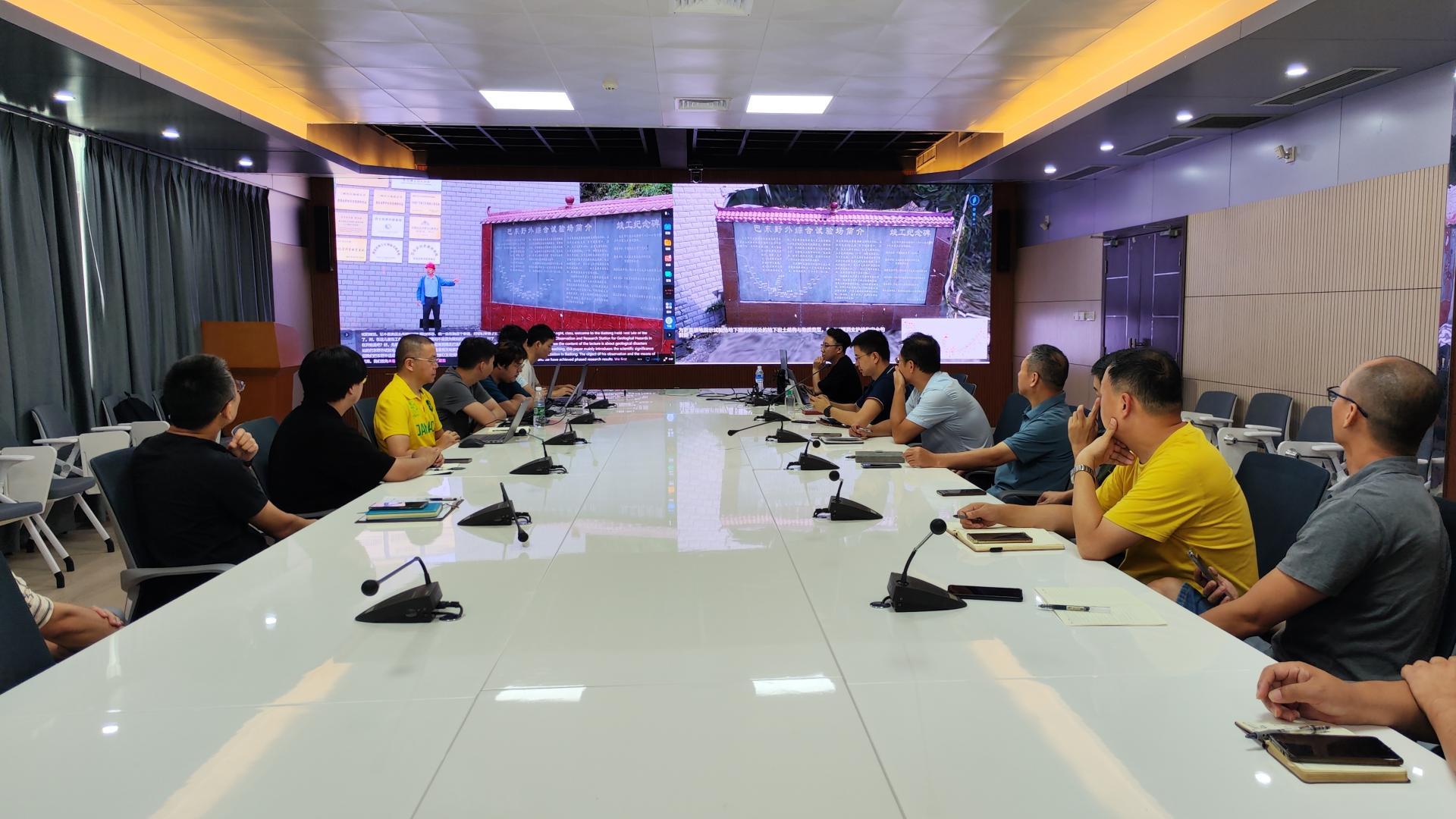 熊承仁教授講解了野外試驗場的科學意義、觀測研究對象、監測技術手段、原位試驗方法,以及重要階段性研究成果。巴東野外綜合試驗場于滑坡體內開拓了觀測試驗隧洞群,開展大型原位試驗,同時采用多種技術手段對黃土坡滑坡進行“天—空—地—深”多維度實時觀測,深入研究探討大型水庫滑坡的變形演化規律與長期安全性。