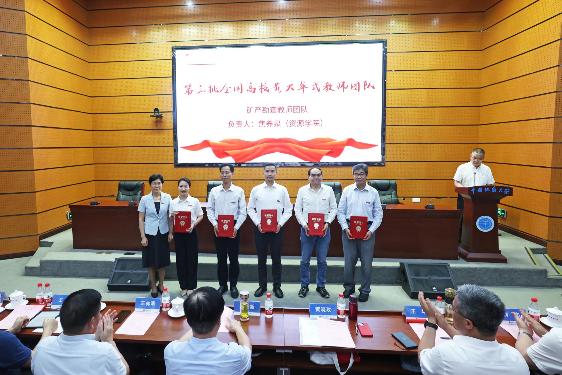 儀式上,表彰了學(xué)校一年來涌現(xiàn)出的優(yōu)秀教師代表。黃曉玫為入選第三批“全國高校黃大年式教師團(tuán)隊(duì)”的礦產(chǎn)勘查教師團(tuán)隊(duì)成員代表頒發(fā)榮譽(yù)證書。
