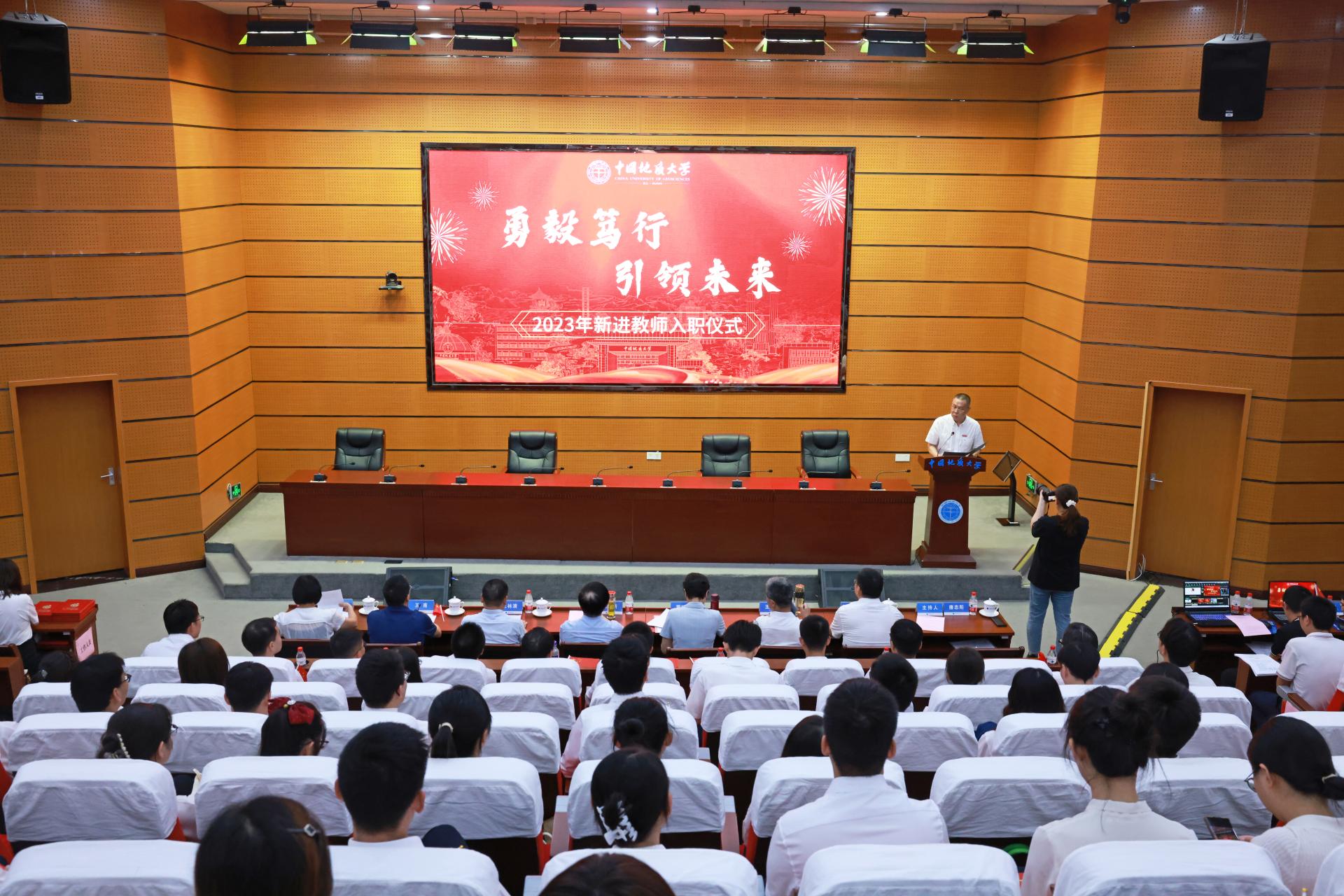 地大新聞網(wǎng)訊 (通訊員 鄧錫琴 攝影 孫彥欽)為熱烈慶祝全國第39個(gè)教師節(jié),增強(qiáng)新進(jìn)教師職業(yè)認(rèn)同感、榮譽(yù)感和使命感,9月8日,學(xué)校舉行2023年新進(jìn)教師入職儀式。在校校領(lǐng)導(dǎo)、黨委常委,全體新進(jìn)教師,中青年教師代表,管理服務(wù)單位負(fù)責(zé)人,教學(xué)科研單位負(fù)責(zé)人及人事秘書參加儀式。校黨委副書記、紀(jì)委書記唐忠陽主持儀式。