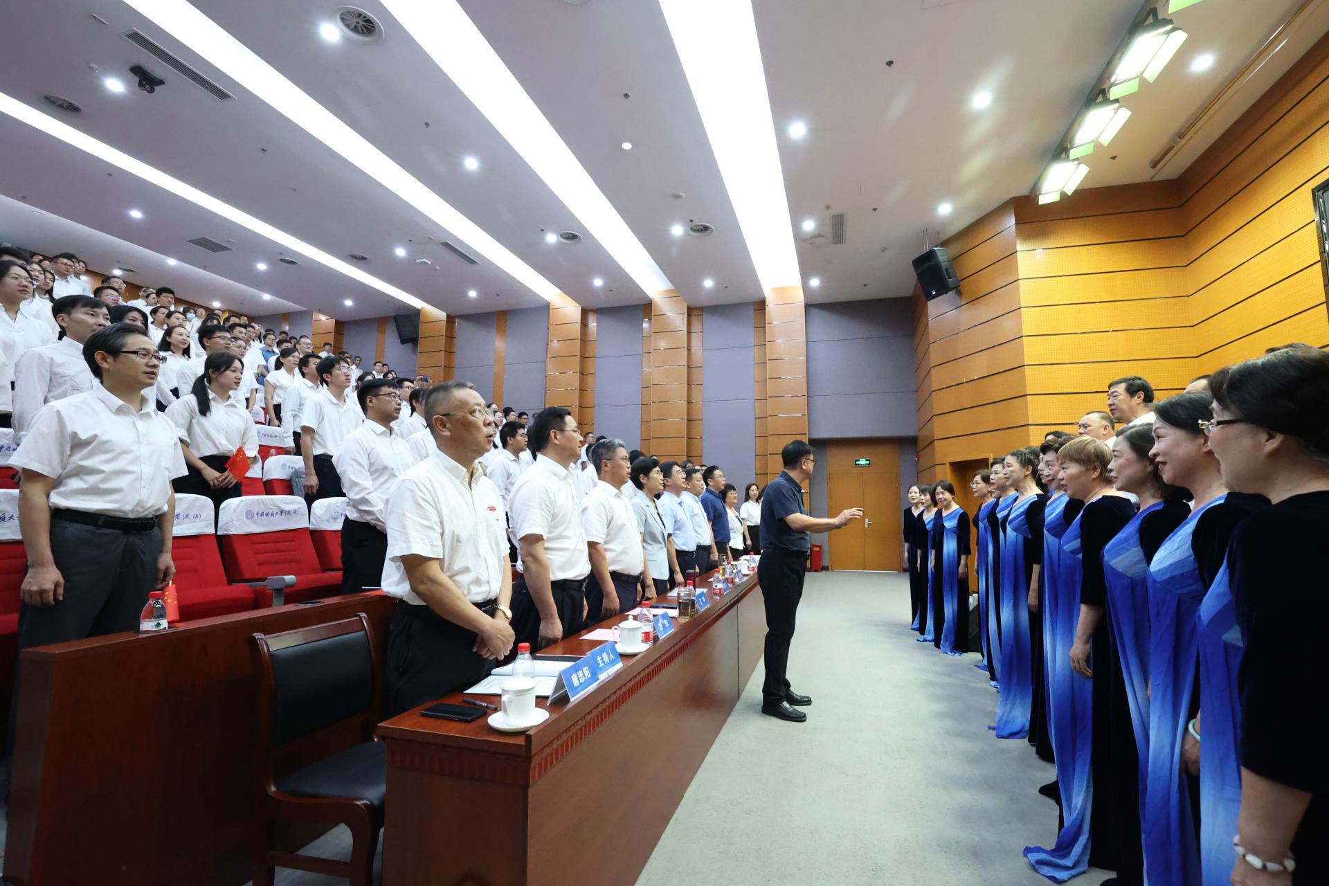儀式在莊嚴(yán)的國歌聲中拉開帷幕。與會人員共同觀看專題片《地大歡迎您—勇毅篤行 引領(lǐng)未來》。