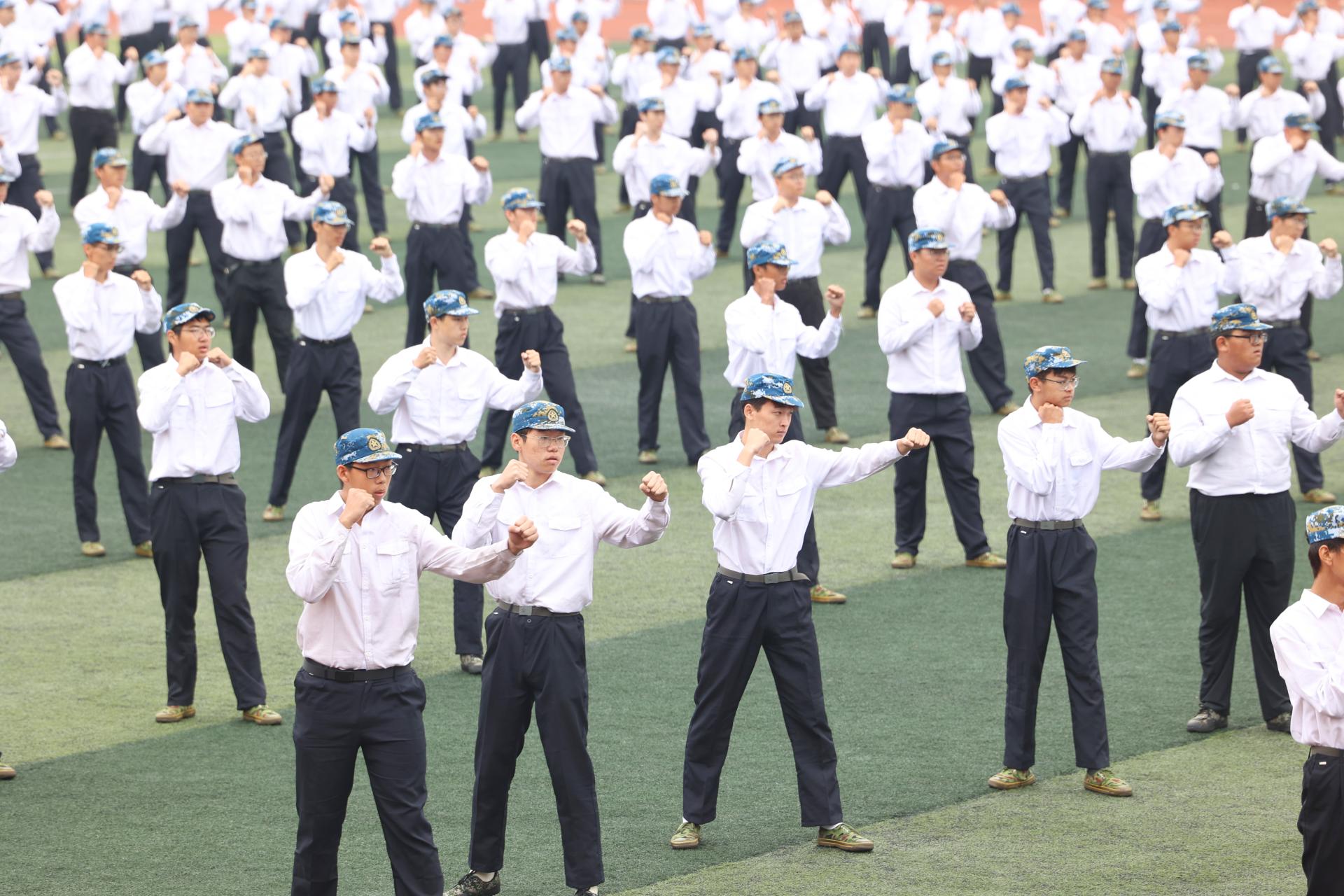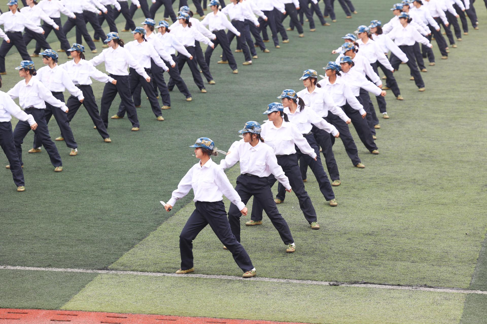 各學院新生組成的37個方陣,以飽滿的精神、嚴整的隊形、鏗鏘的步伐和嘹亮的口號,依次走過主席臺前接受檢閱,他們朝氣蓬勃,意志堅定,展現了大學生積極向上的青春風采。