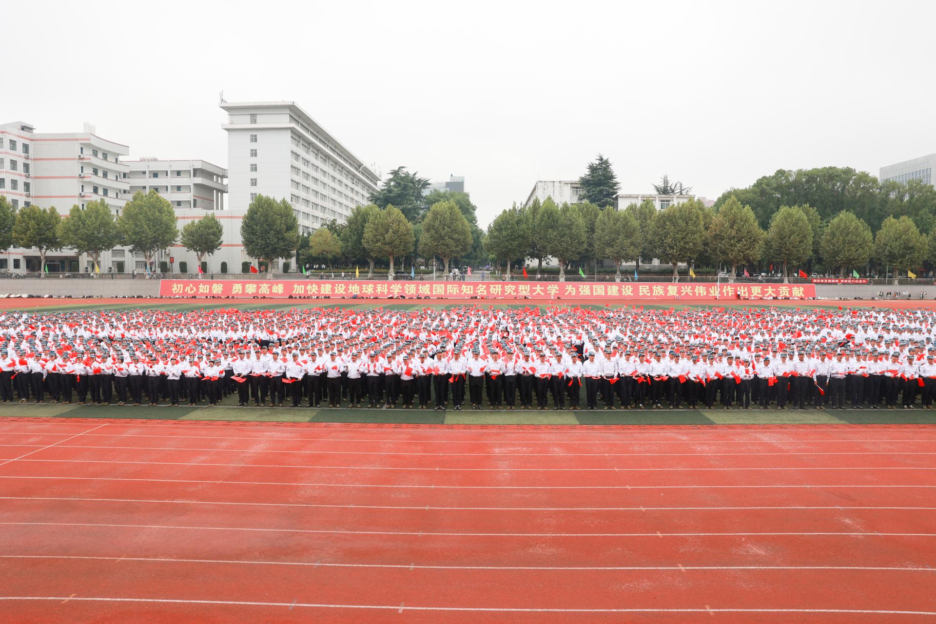 校長王焰新院士作了題為《初心如磐 勇攀高峰》的講話。他說,4699名新地大人目光如炬、步履鏗鏘,以飽滿的精神狀態匯報了軍訓成果,圓滿完成了為期14天的愛國實踐課,他對新生們表示歡迎,向新生們的父母、師長、承訓的空軍預警學院全體教官表示問候和感謝。