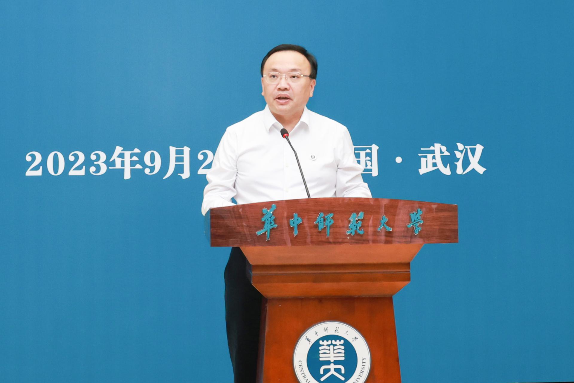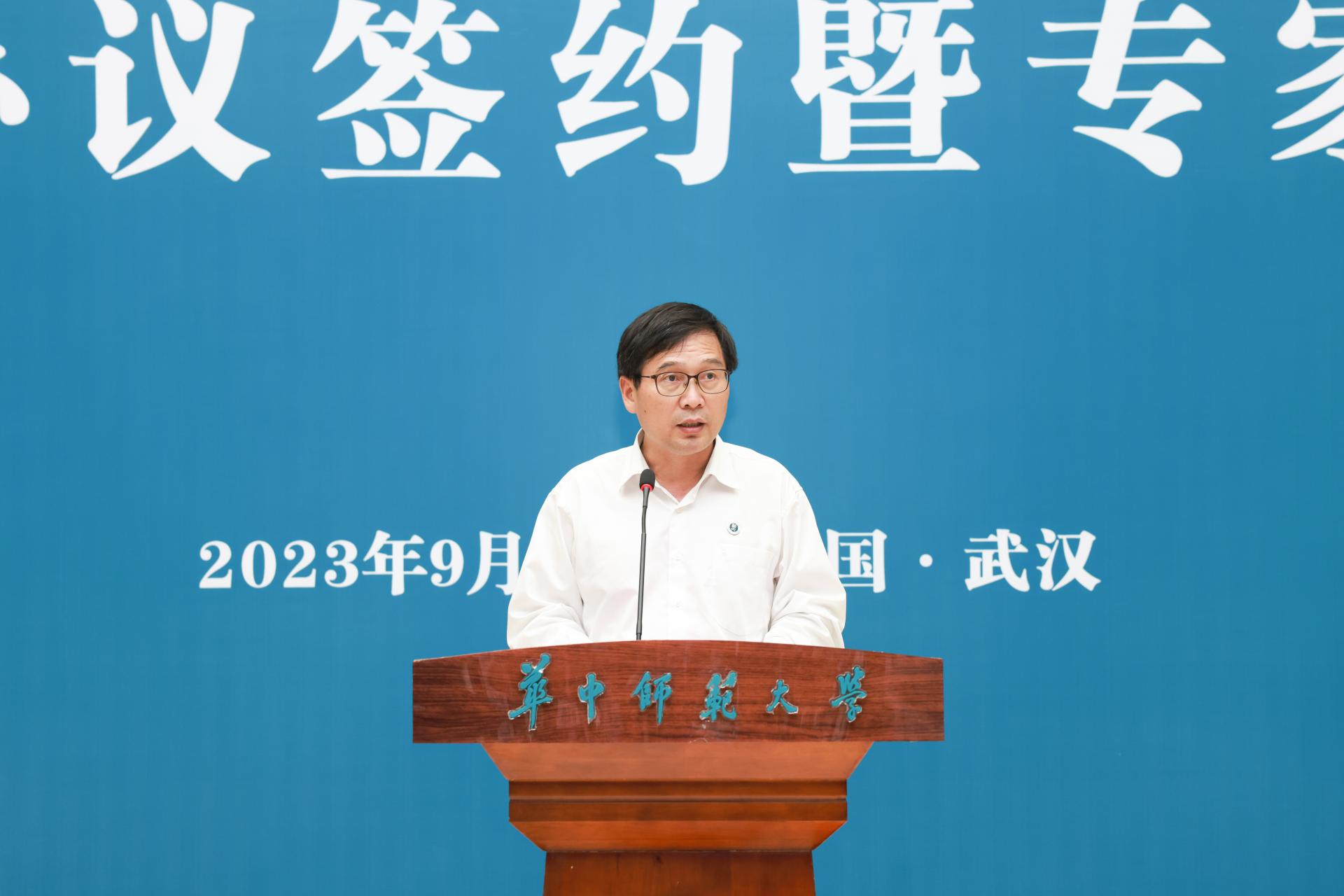 夏立新在講話中表示,桂子山與南望山比肩而立,地大和華師同氣連枝,兩校淵源深厚、歷久彌新,有著共同的文化基因,精神氣質(zhì)相近、學(xué)科特色互補(bǔ)。兩校簽訂戰(zhàn)略合作協(xié)議,充分發(fā)揮各自學(xué)科特色優(yōu)勢,在新工科、新文科建設(shè)上相互支持、攜手共進(jìn),是一件具有里程碑意義的盛事。希望兩校在今后的合作中扎根中國大地,攜手服務(wù)黨和國家重大戰(zhàn)略需求;聚焦重點(diǎn)領(lǐng)域,強(qiáng)化優(yōu)勢互補(bǔ),推動(dòng)原始創(chuàng)新和關(guān)鍵領(lǐng)域突破;優(yōu)化合作機(jī)制,拓展合作范圍,不斷創(chuàng)新合作形式和內(nèi)容,實(shí)現(xiàn)雙向賦能,為中國特色世界一流大學(xué)建設(shè)闖新路、創(chuàng)示范,為構(gòu)建高質(zhì)量高等教育體系、建設(shè)教育強(qiáng)國、推動(dòng)實(shí)現(xiàn)中國式現(xiàn)代化作出更大貢獻(xiàn)。