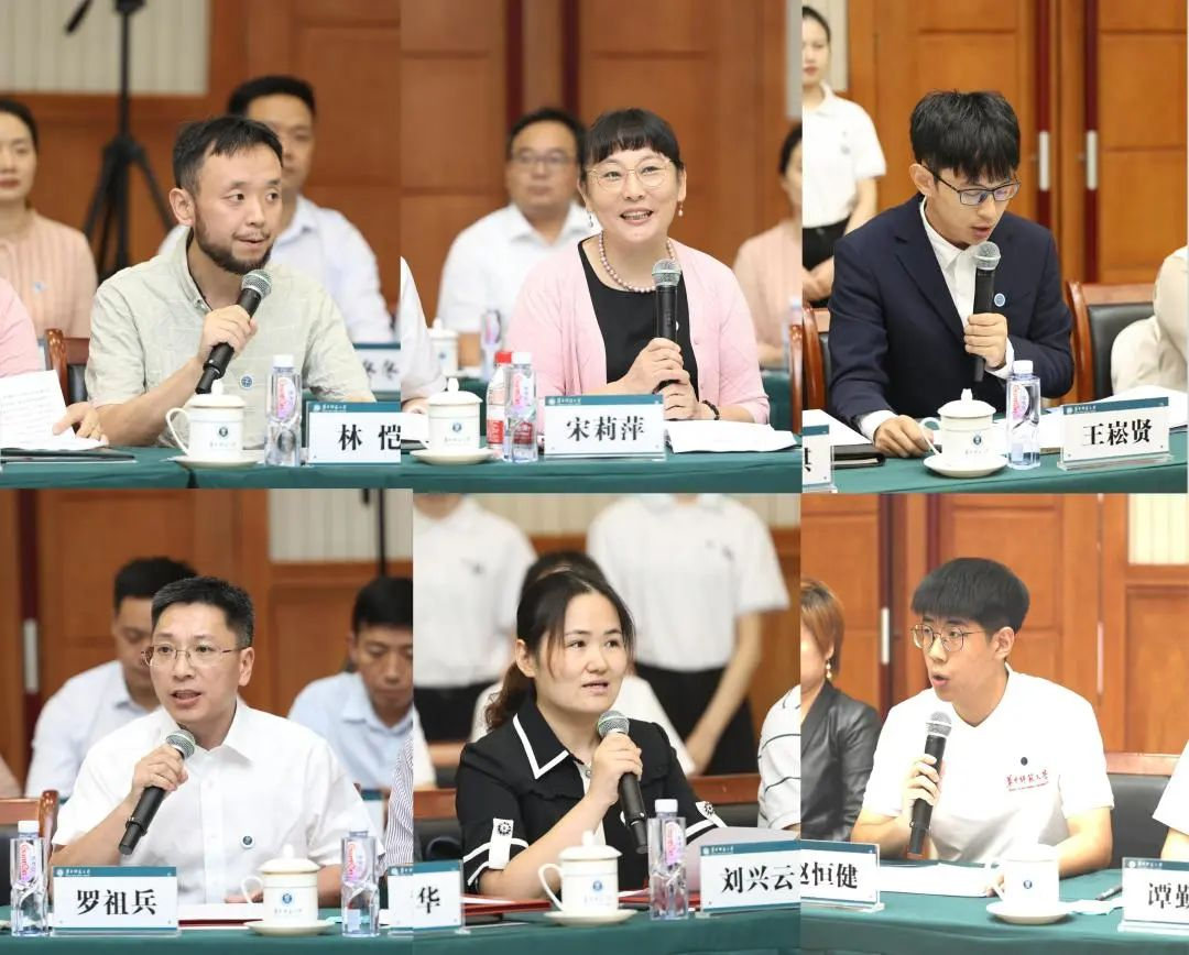 我校地球物理與空間信息學(xué)院教授林愷、經(jīng)濟(jì)管理學(xué)院副教授宋莉萍,工程學(xué)院2023級博士研究生王崧賢,華中師范大學(xué)教育學(xué)院教授羅祖兵、心理學(xué)院教師劉興云,教育學(xué)院2020級本科生趙恒健等師生代表圍繞兩校深化戰(zhàn)略合作、促進(jìn)共同發(fā)展交流發(fā)言。大家表示,立足新時(shí)代,面對新工科、新文科和推進(jìn)教育數(shù)字化戰(zhàn)略的挑戰(zhàn)和機(jī)遇,兩校在服務(wù)國家、區(qū)域重大戰(zhàn)略需求、解決產(chǎn)業(yè)關(guān)鍵共性技術(shù)和重大關(guān)鍵問題上,有著共同的目標(biāo)、良好的合作基礎(chǔ)和廣闊的合作前景。雙方攜手,在保持各自優(yōu)勢的基礎(chǔ)上,促進(jìn)兩校在人才培養(yǎng)、科學(xué)研究、管理體制改革等方面的互補(bǔ),是促進(jìn)文理相通、打造合作方式的創(chuàng)新之舉,有助于兩校在推動(dòng)“雙一流”建設(shè)進(jìn)程中互利共贏。