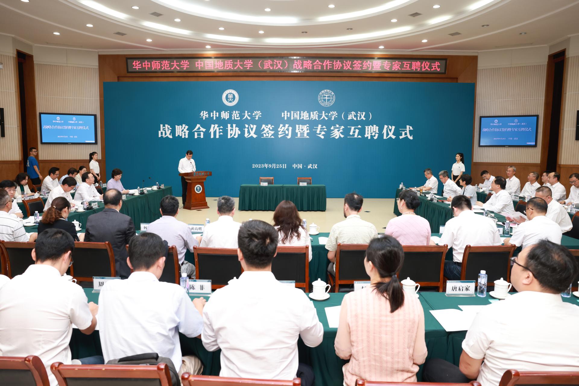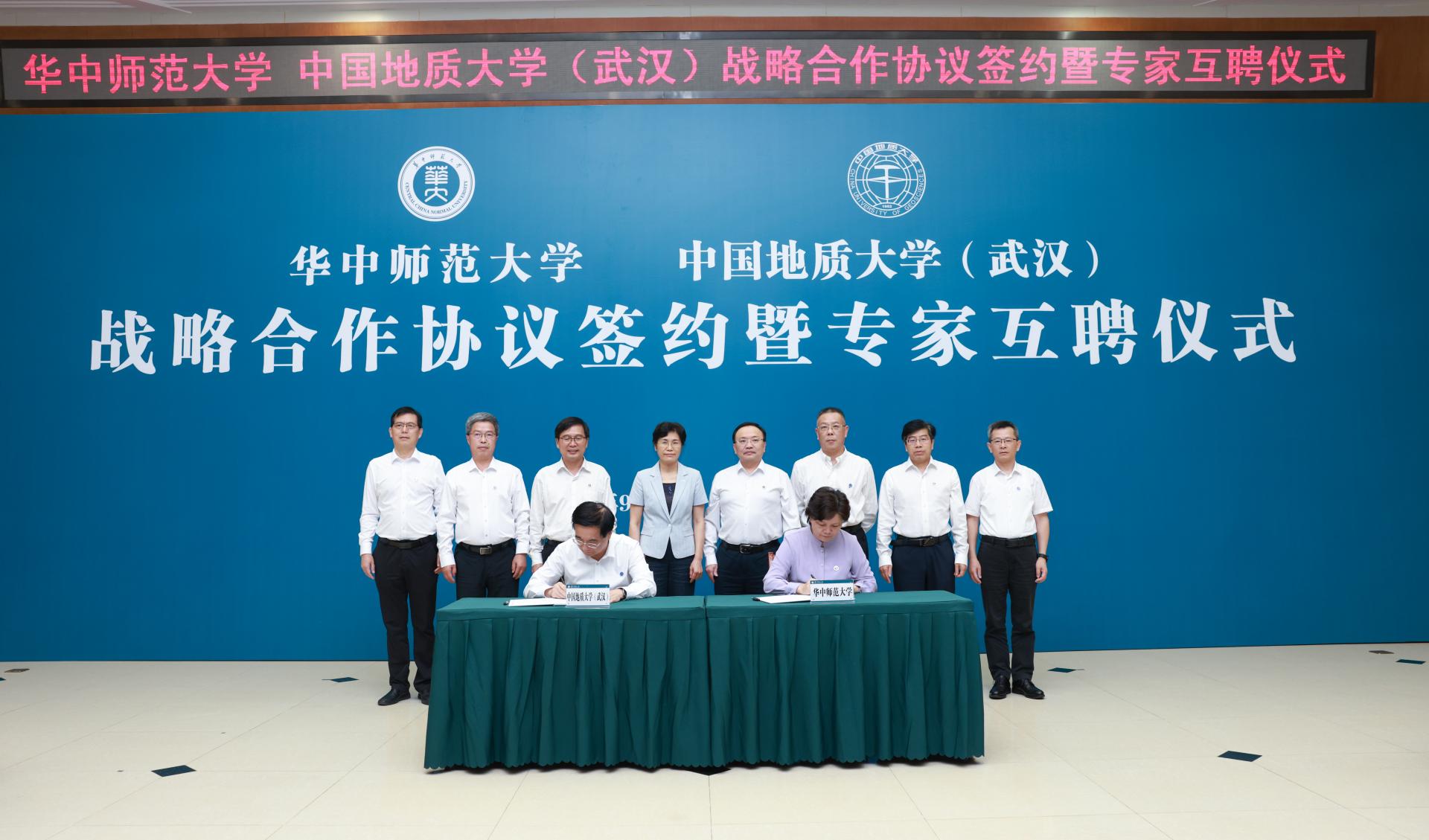 中國地質(zhì)大學(xué)(武漢)校長王焰新與華中師范大學(xué)校長郝芳華代表雙方學(xué)校簽署戰(zhàn)略合作協(xié)議