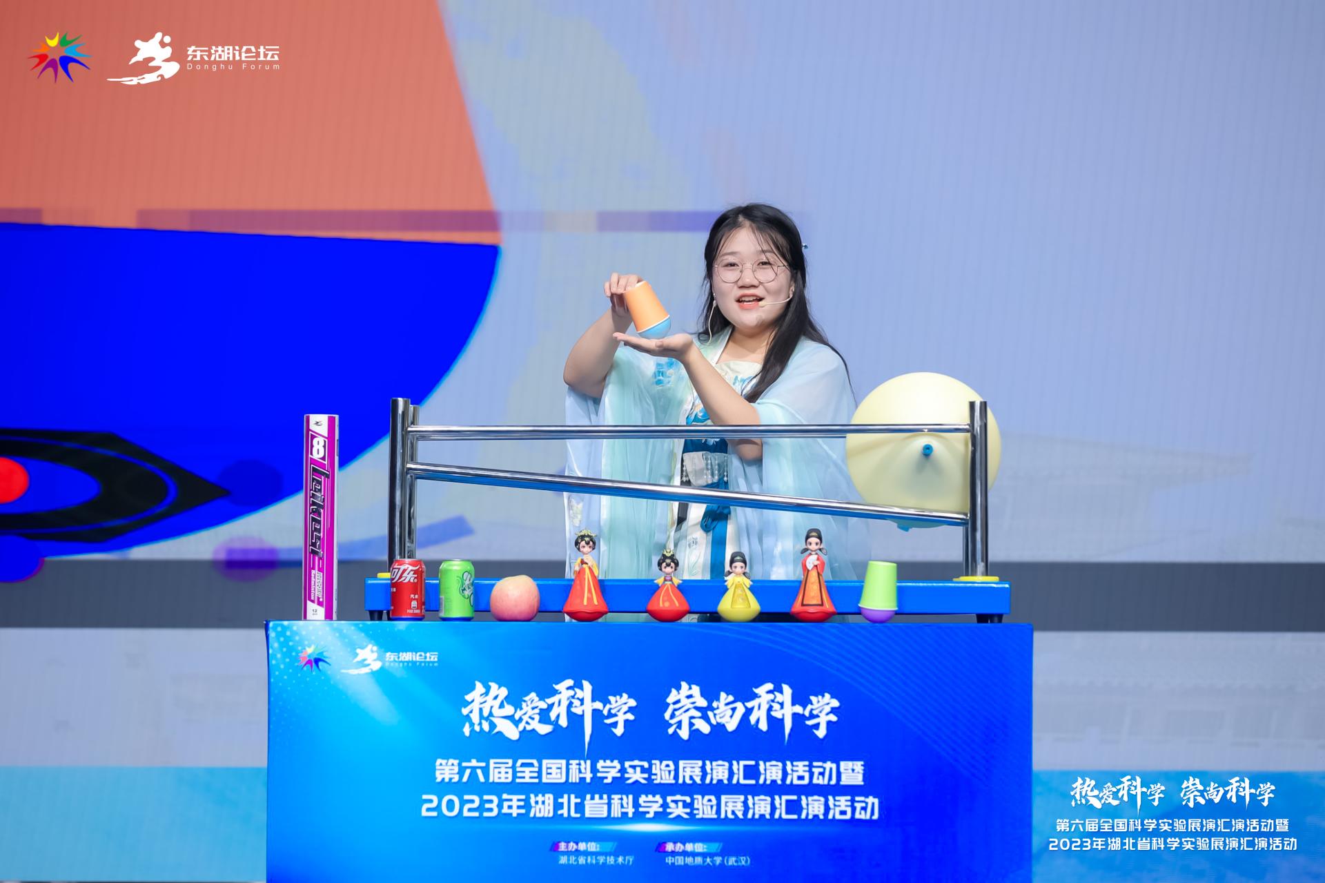 展演過程中,60余名參賽選手圍繞物理、化學、生物等學科,通過角色扮演、故事講述等形式,從《覆杯探秘》到《解密錐體上滾》,從《靜電夢幻游》到《磁懸浮列車中的電與磁》,用一個個集科學性、知識性、趣味性、觀賞性于一體的實驗,向公眾深入淺出地展演了“康達效應”“偏振光的原理”“不倒翁原理”“靜電現象”等趣味科學知識。