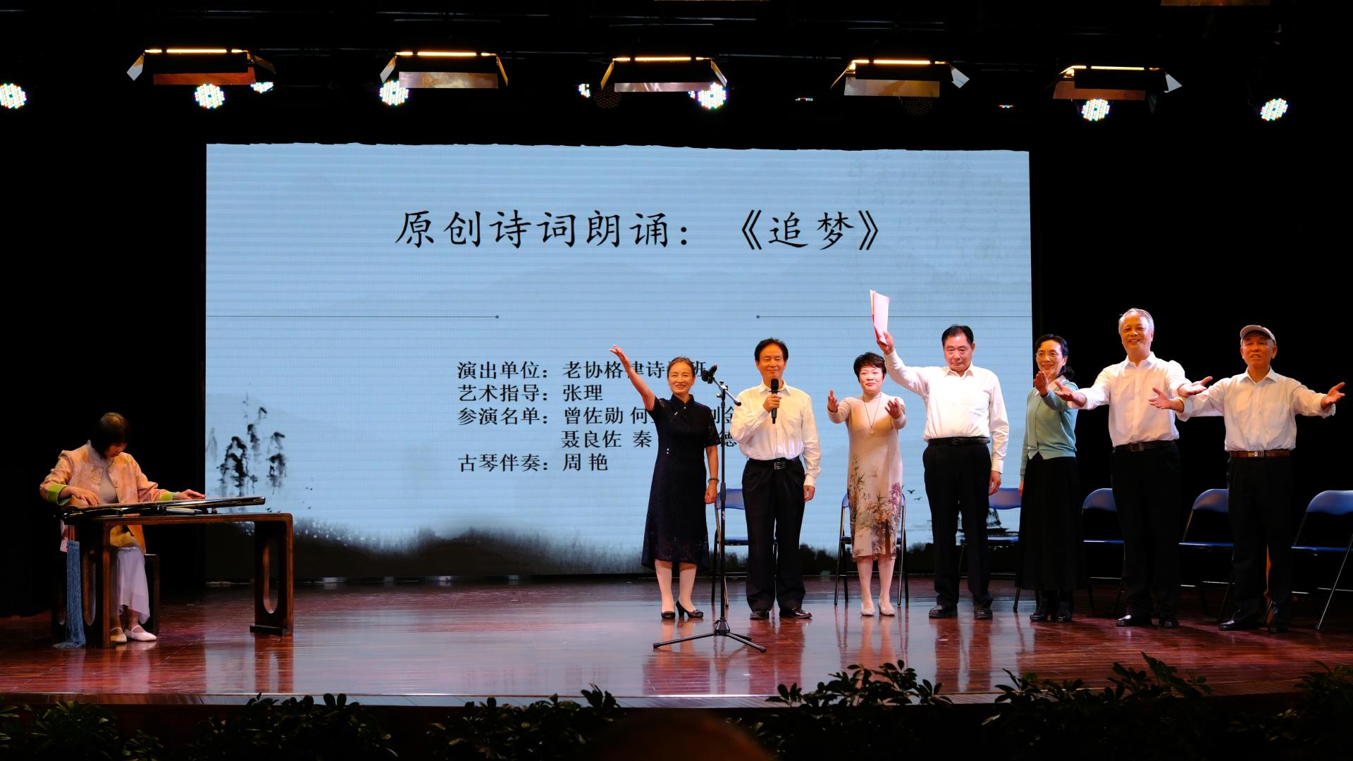 老協(xié)最年輕的團(tuán)隊“詩詞吟誦班”用手中的筆、心中的歌,表達(dá)對祖國、對地大、對晚年生活的熱愛。他們用豪放或者婉約的聲音,演繹原創(chuàng)詩詞作品,贏得陣陣掌聲。