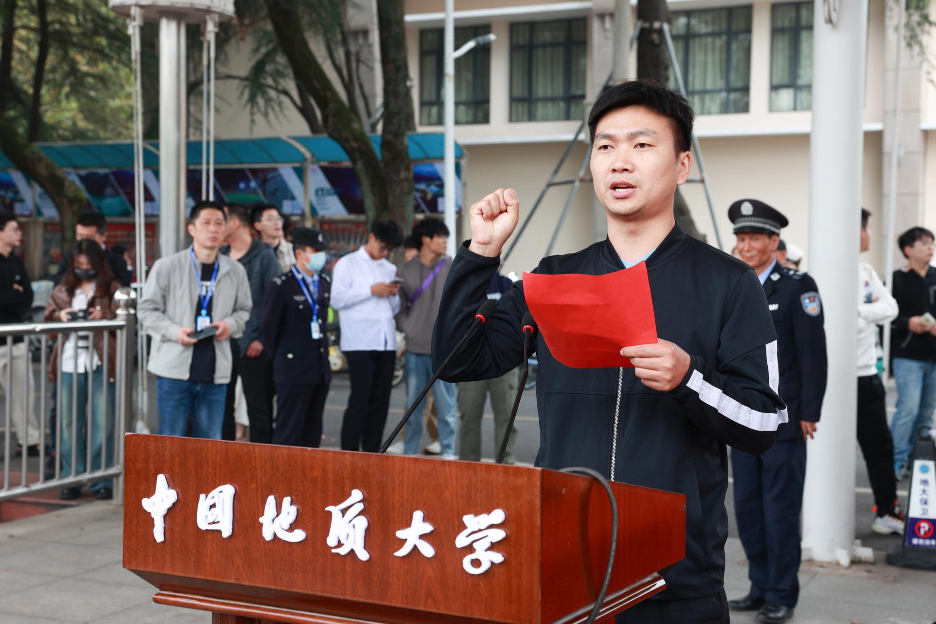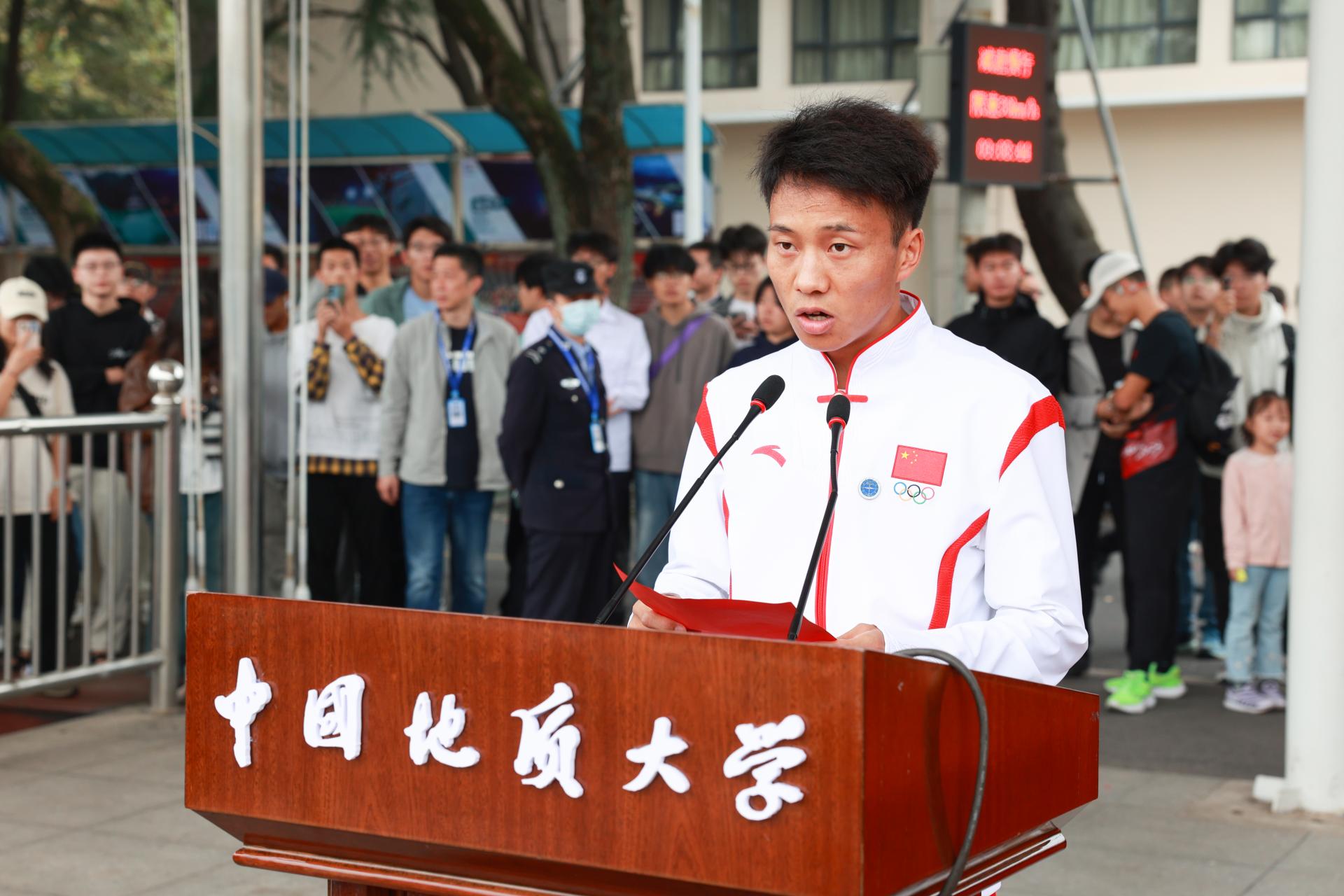 體育學院本科生、杭州亞運會男子馬拉松冠軍何杰代表學生運動員宣誓。