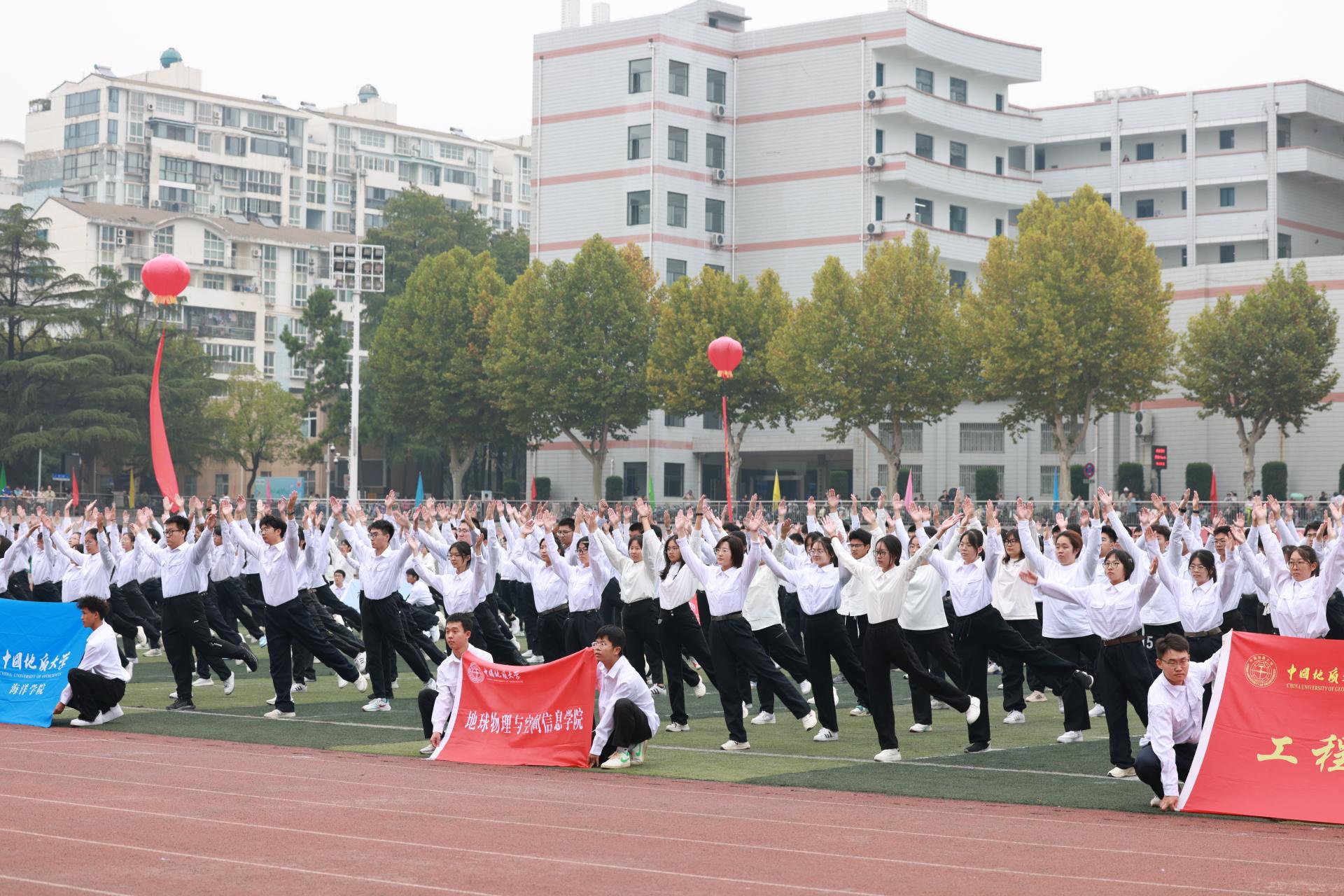 廣播體操代表隊踏著青春的步伐入場,有序排開。整齊劃一的動作、精神飽滿的面容,展現了地大師生的昂揚風貌。