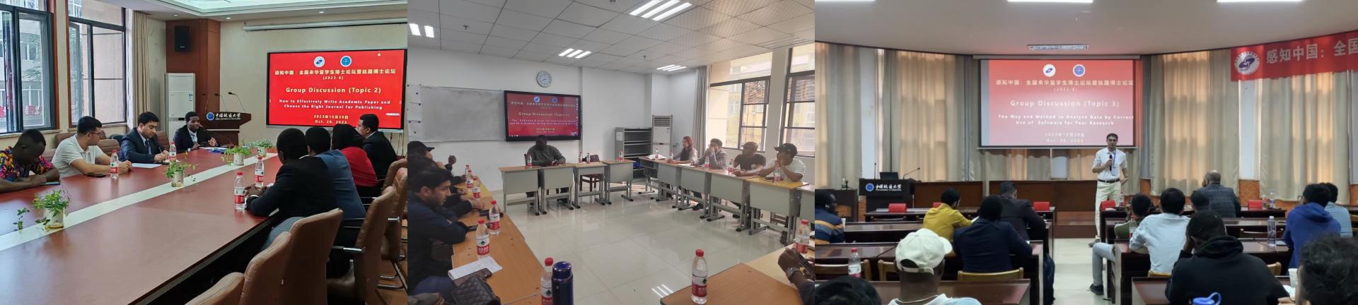 來自八所高校的200余名參會學生分成三個小組,針對博士論文研究和寫作進度中的“痛點”、博士如何高效寫作、選擇發表期刊、正確使用軟件分析數據的途徑和方法三個主題展開學術討論,并進行總結發言。參加講座的國際學生紛紛表示,論壇具有針對性和實用性,豐富了對學科領域的認識,拓寬了科研視野,迸發了科研新思路,營造良好的來華留學學術氛圍。
