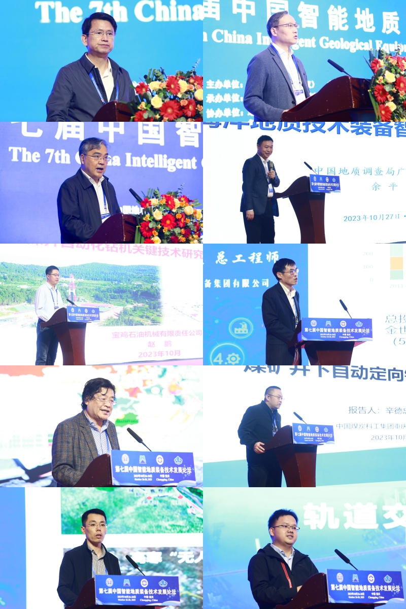 顏成義、周俊、周寅倫代表主辦方和承辦方分別致辭。廣州海洋地質調查局副總工程師余平、中國石油寶雞石油機械有限公司高級工程師趙鵬、中國地質裝備集團有限公司總工程師黃洪波、中國礦業大學馬小平教授、中煤科工集團重慶研究院有限公司首席科學家辛德忠、中國科學院武漢巖土力學研究所韓增強副研究員、重慶市測繪科學技術研究院副總工程師胡波,分別作大會主題報告。各位專家結合自身研究領域和工程應用方向,分析了地質裝備現狀、智能制造在地質裝備中的應用以及往后的智能化發展方向,提出地質裝備智能化發展過程中存在的機遇和挑戰。