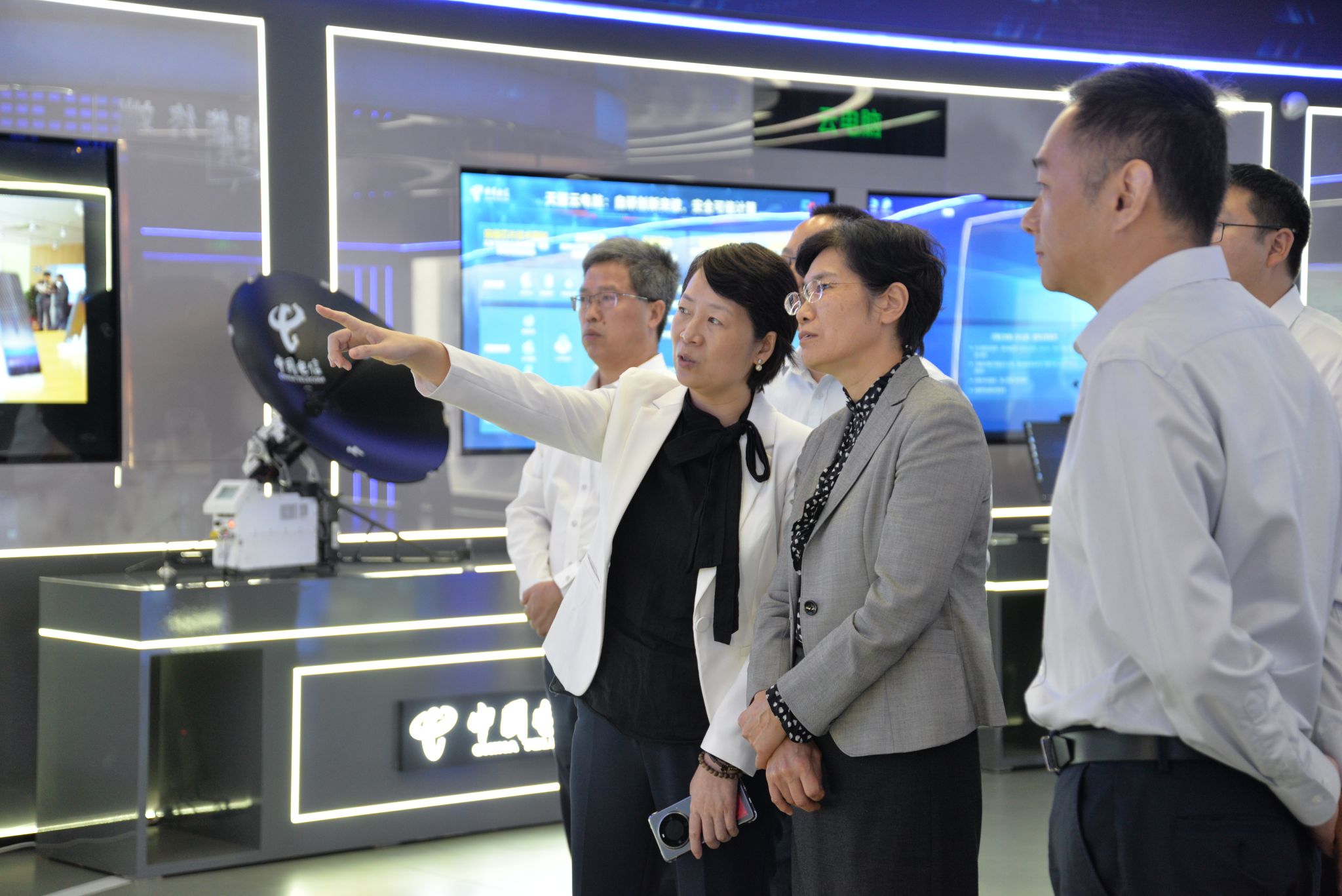 座談前,黃曉玫一行到中國電信展廳參觀調研,了解公司發展歷程、技術創新、信息服務應用等方面工作成效。