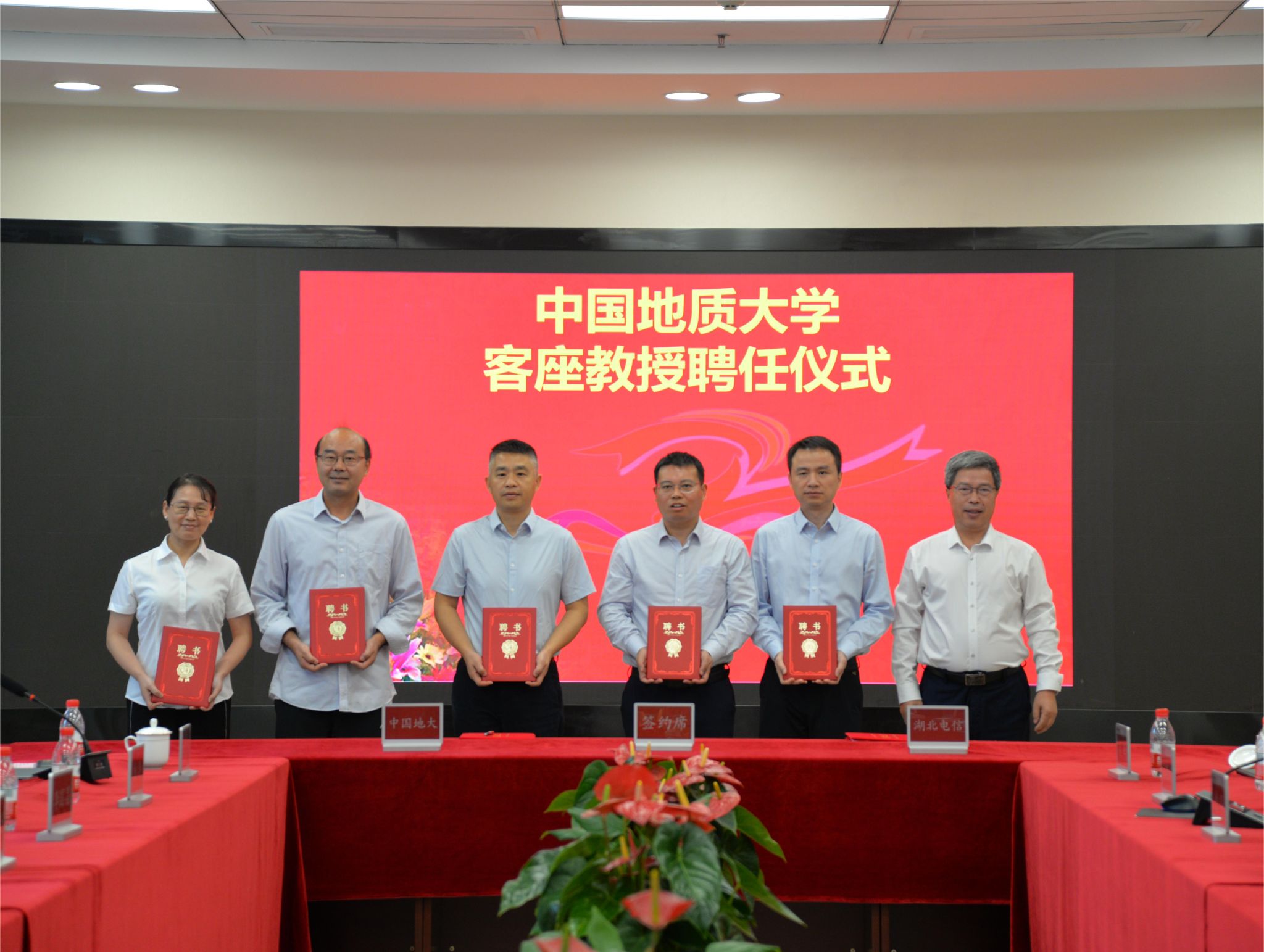 會上,王華向中國電信湖北分公司的鄭成林、潘圣宇等6位技術專家頒發聘書,聘任他們為兼職教授。