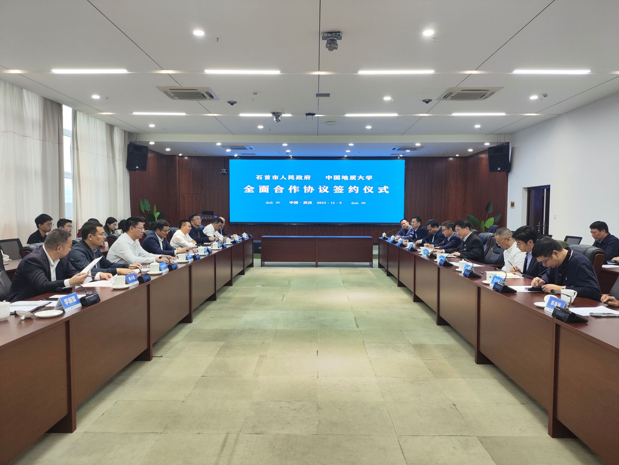 地大新聞網訊 (通訊員 付玉迪)11月5日,我校與石首市人民政府簽署全面合作協議。石首市市委書記王敏,市委常委、常務副市長黃健,市委常委、副市長程鵬,我校校長王焰新院士,黨委副書記、紀委書記唐忠陽,校長助理呂一兵參加簽約儀式。
