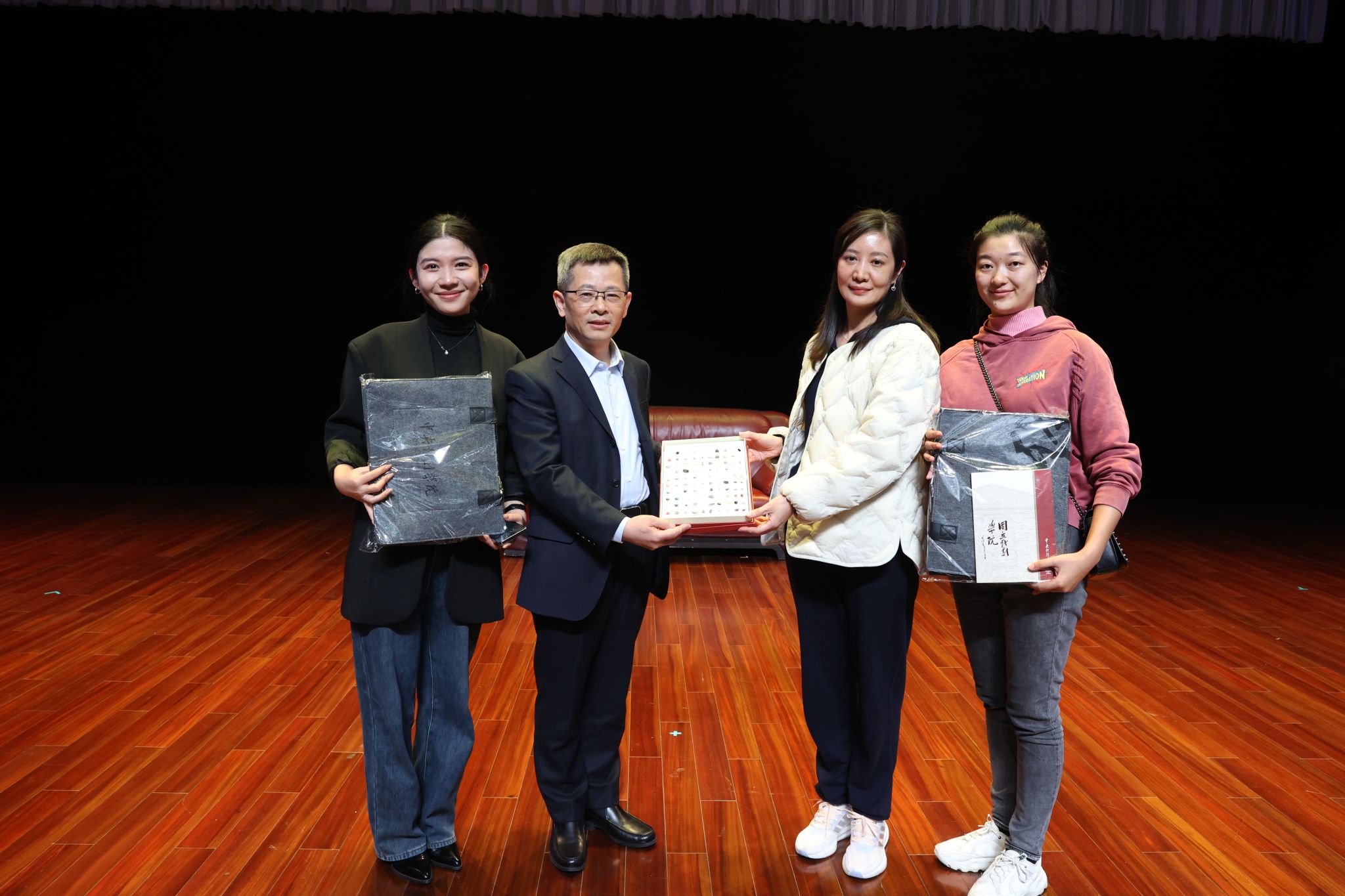 演出結(jié)束后,副校長李建威代表學(xué)校和中央戲劇學(xué)院互贈文創(chuàng)產(chǎn)品。