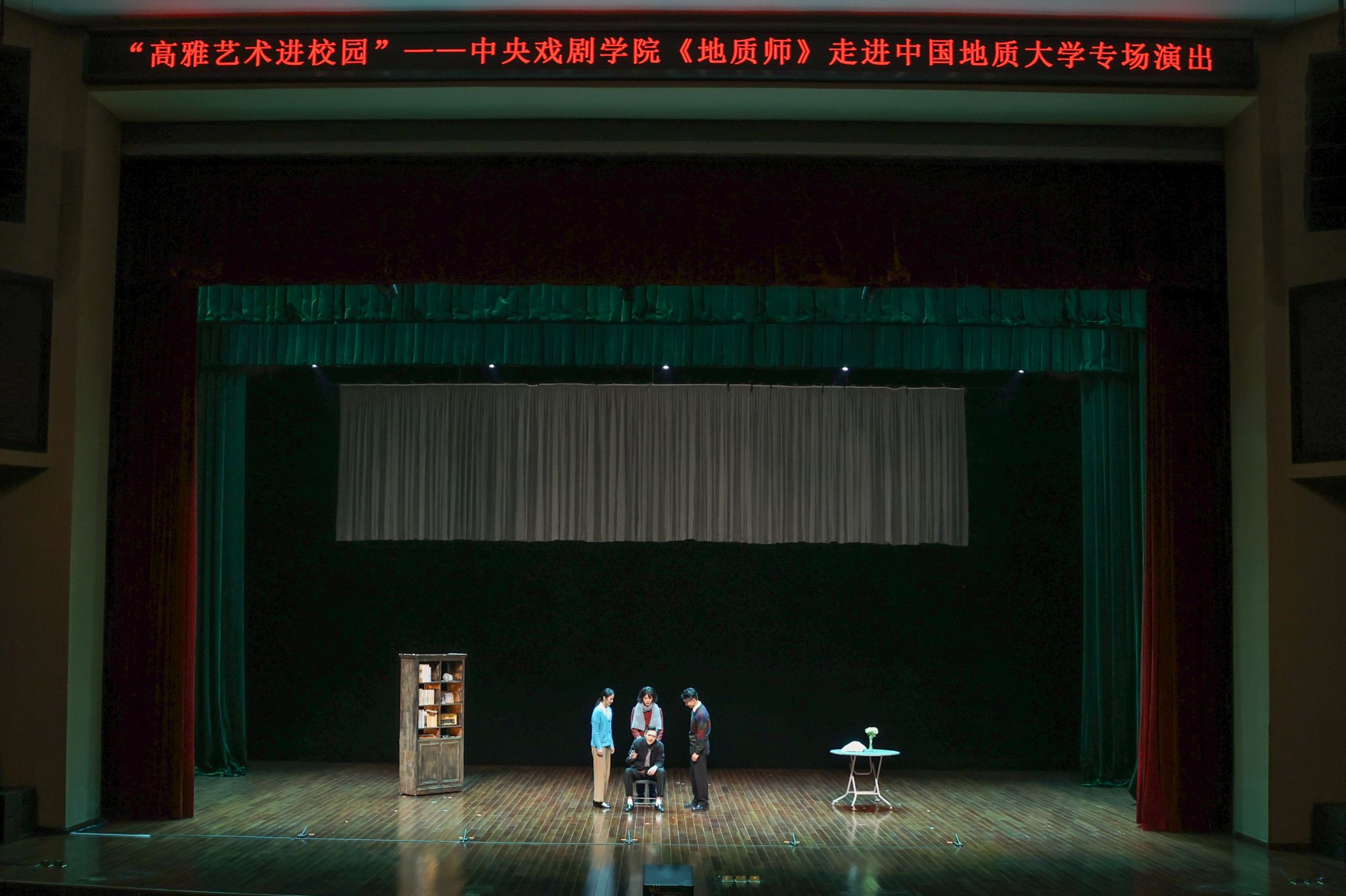 地大新聞網(wǎng)訊(通訊員 陳文婷 攝影 孫彥欽 王思睿 王俊芳 陳文婷)11月7日,為慶祝中國地質(zhì)大學(xué)建校71周年,校團委、未來城校區(qū)管理辦公室、圖書檔案與文博部聯(lián)合組織“校慶回望初心 山河鐫刻使命”話劇演出和經(jīng)典電影放映活動。當(dāng)晚,高雅藝術(shù)進校園——中央戲劇學(xué)院原創(chuàng)話劇《地質(zhì)師》在未來城校區(qū)弘雅堂演出。同時,經(jīng)典電影《年青的一代》在南望山校區(qū)弘毅堂放映。