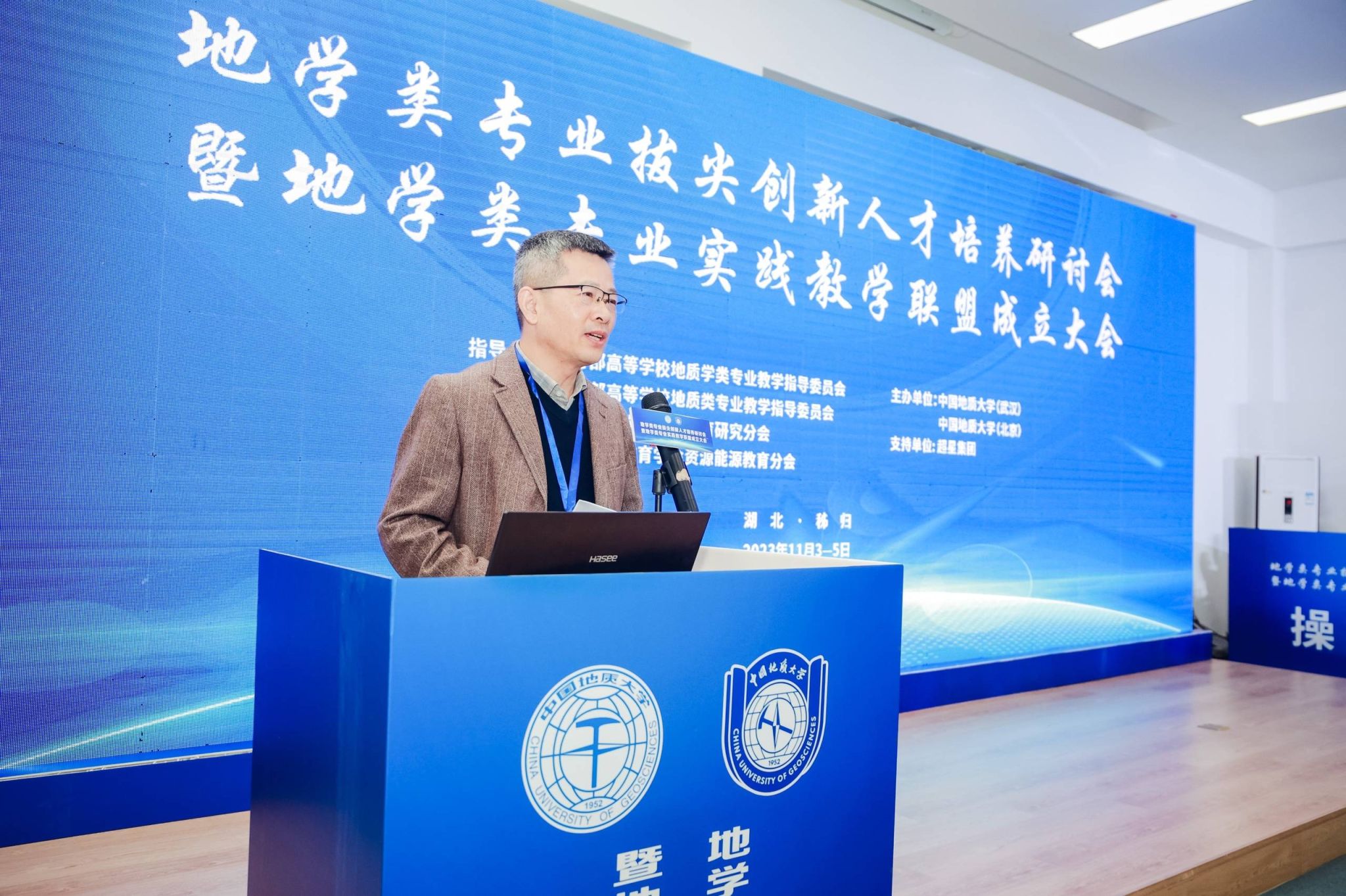 教育部高等學校地質學類專業教學指導委員會主任委員賴旭龍教授宣布地學類專業實踐教學聯盟正式成立。