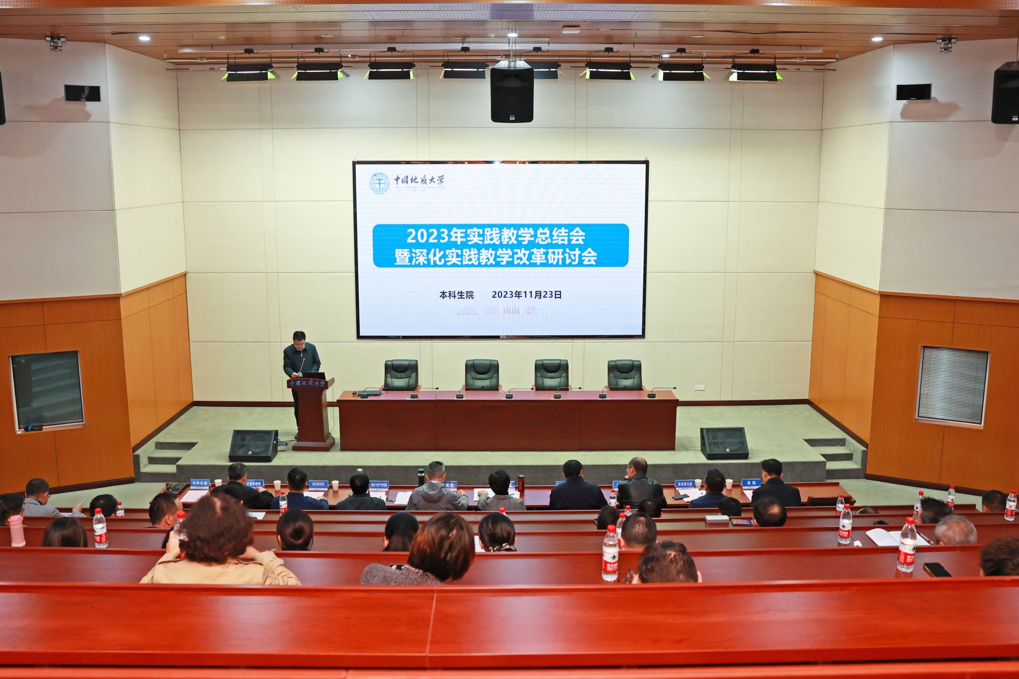 地大新聞網訊 (通訊員 章帆 攝影 樊叢蓉)11月23日,我校2023年實踐教學總結會暨深化實踐教學改革研討會在南望山校區召開。校黨委書記黃曉玫,副校長李建威,各學院教學副院長,實習團隊負責人,優秀實習指導教師代表和相關管理與服務部門負責人參加會議。黨委學工部部長鄔海峰主持會議。