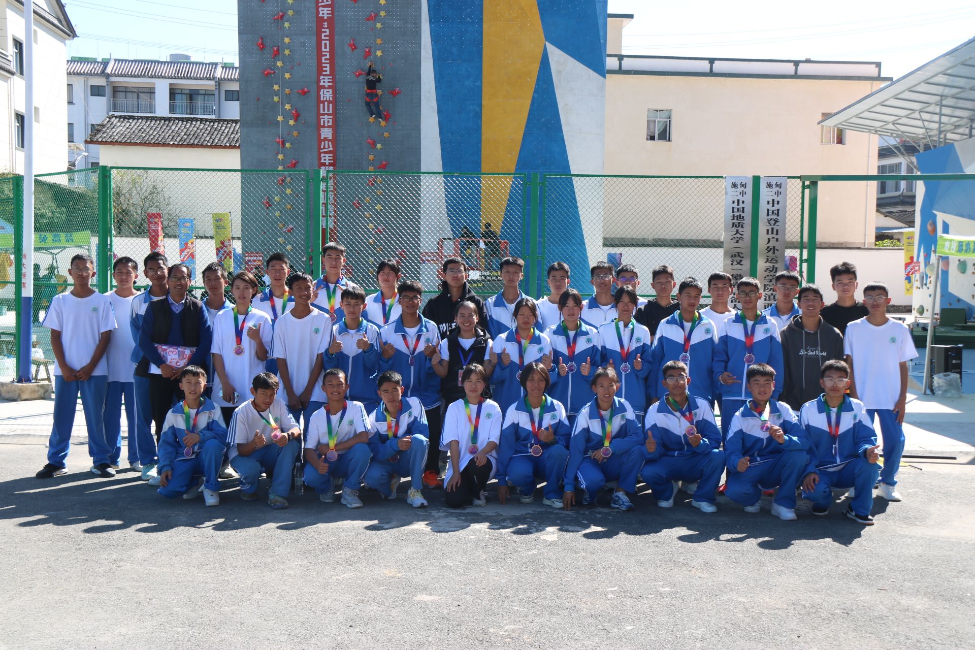據悉,我校積極響應國家戰略和發展需求,深入推進脫貧攻堅同鄉村振興的有效銜接,對口幫扶施甸二中援建戶外攀巖項目。該項目于2022年2月開工、9月竣工,并于同年11月28日正式掛牌“中國登山戶外運動學院滇西訓練基地”和“中國地質大學(武漢)攀巖后備人才培訓基地”,這標志著滇西第一座戶外標準化攀巖墻在施甸二中落地。