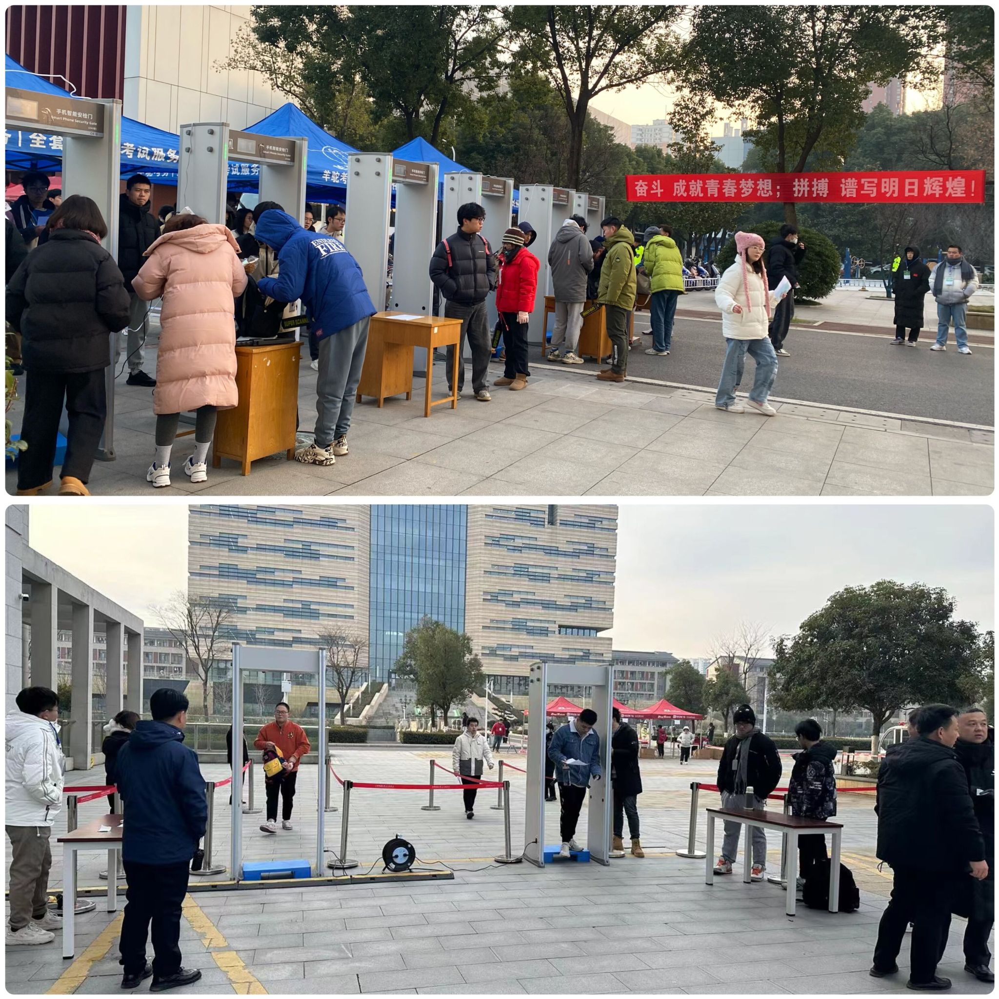 “五位一體”,力保安全。為嚴(yán)格考場(chǎng)秩序管理要求,切實(shí)落實(shí)考試安全措施,研究生院(黨委研究生工作部)協(xié)同學(xué)校辦公室、安全保衛(wèi)部、后勤保障部、未來(lái)城校區(qū)管理辦公室、信息化工作辦公室等多個(gè)部門全面加強(qiáng)統(tǒng)籌,壓實(shí)責(zé)任,細(xì)化管理,責(zé)任聚焦到崗到人,構(gòu)筑“五位一體”安全網(wǎng),包括:入口處設(shè)置近20處手機(jī)集中存放點(diǎn),實(shí)現(xiàn)電子產(chǎn)品高效便捷集中存取;搭建10組智能安檢門查驗(yàn)電子通訊類設(shè)備,報(bào)警后進(jìn)行二次人工安檢復(fù)核,實(shí)現(xiàn)考生分批有序入場(chǎng);考試樓棟入口搭建20余處人臉核驗(yàn)裝置,同步掃描面部和身份證件事半功倍;考場(chǎng)教室門口監(jiān)考員再次安檢并核驗(yàn)證件,守好考場(chǎng)陣地;全頻道信號(hào)屏蔽為考試安全搭建“隱形防線”。