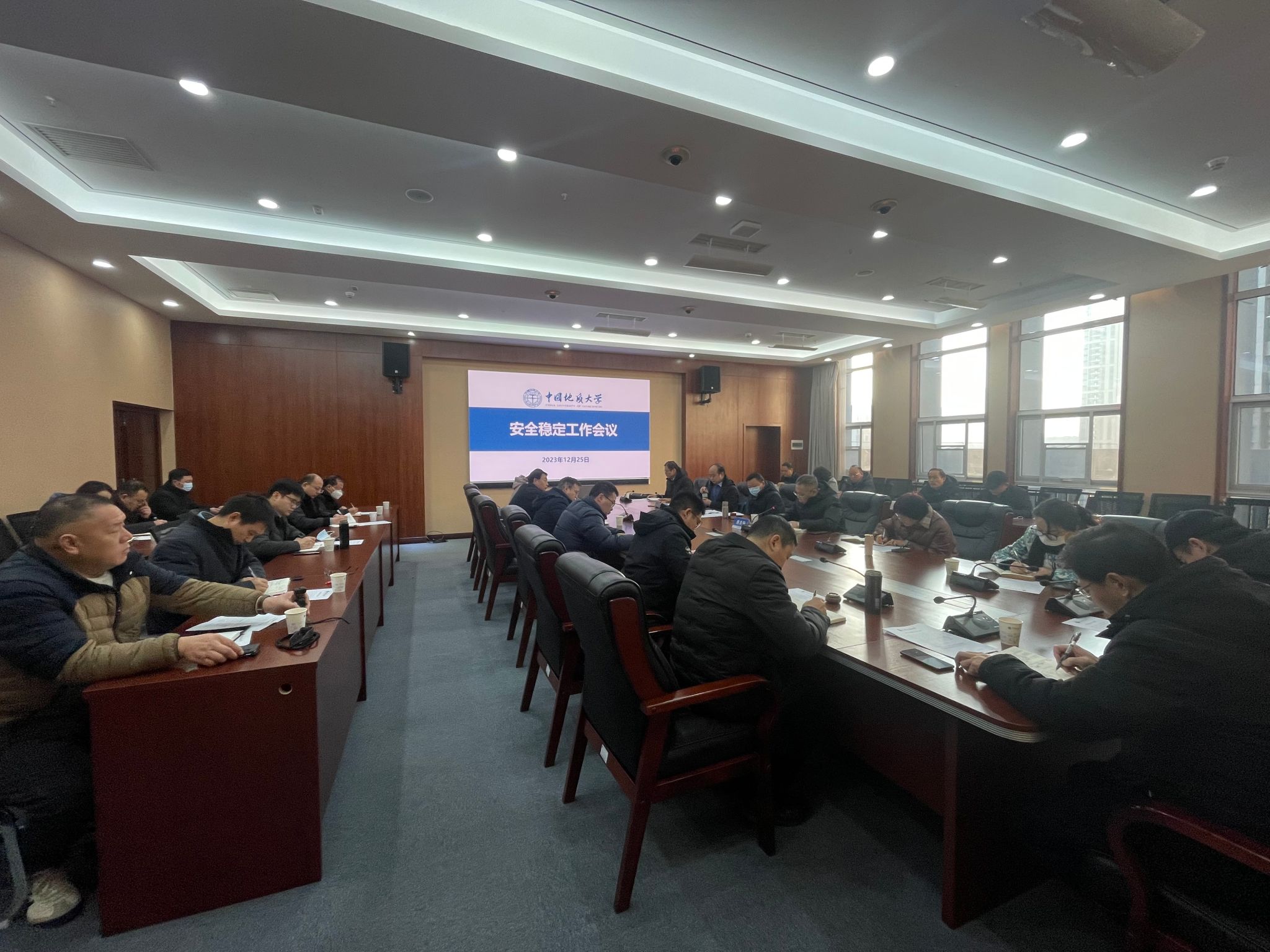 12月25日,我校召開安全穩定工作會議,黨委副書記、紀委書記唐忠陽傳達湖北省有關會議精神和專項工作要求,黨委副書記王林清強調部署學校歲末年初校園安全穩定工作。