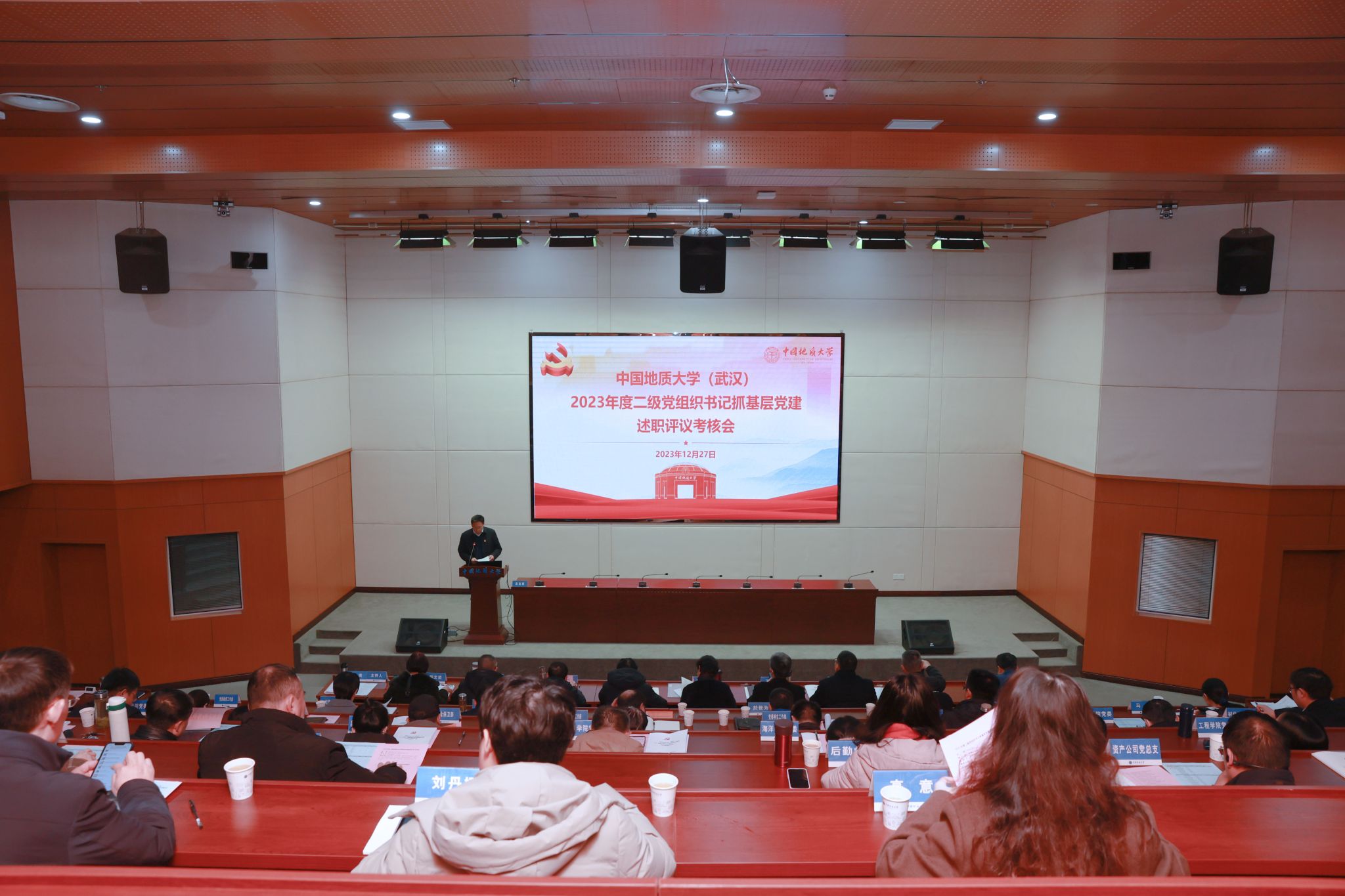 地大新聞網(wǎng)訊(通訊員 李海涵 攝影 樊叢蓉)12月27日,我校2023年度二級黨組織書記抓基層黨建述職評議考核會召開。在校校領(lǐng)導(dǎo),黨委常委,各二級黨組織書記,黨務(wù)部門、群團(tuán)組織負(fù)責(zé)人,“兩代表一委員”代表、院長代表、干部代表、黨支部書記代表、學(xué)生代表等參加評議考核。教育部直屬高校黨建工作聯(lián)絡(luò)員謝守成到會指導(dǎo),校黨委副書記王甫主持會議。