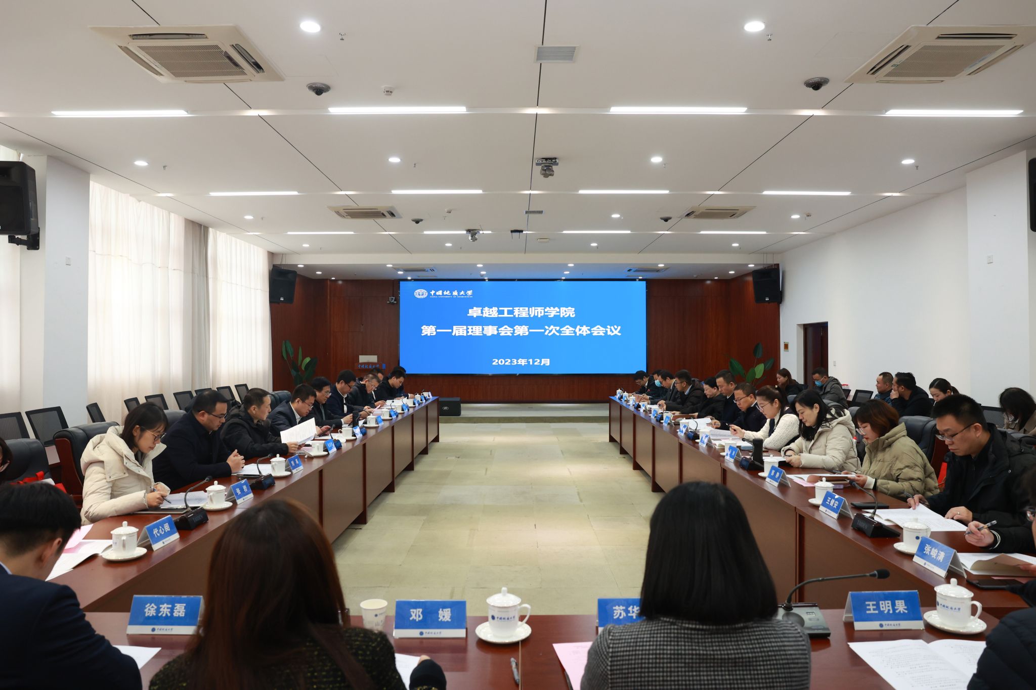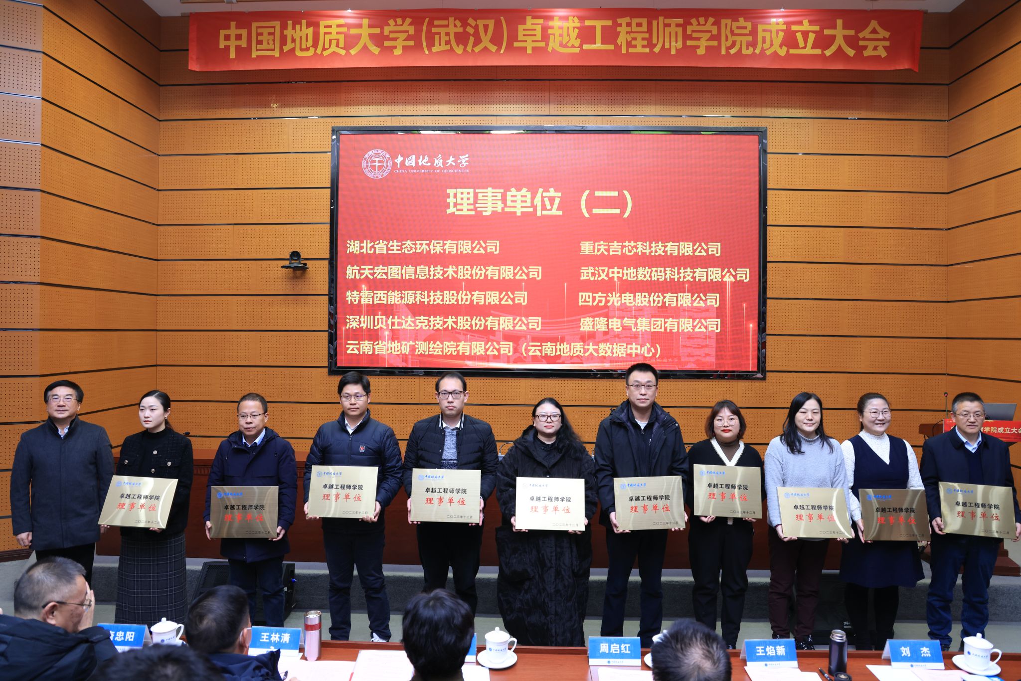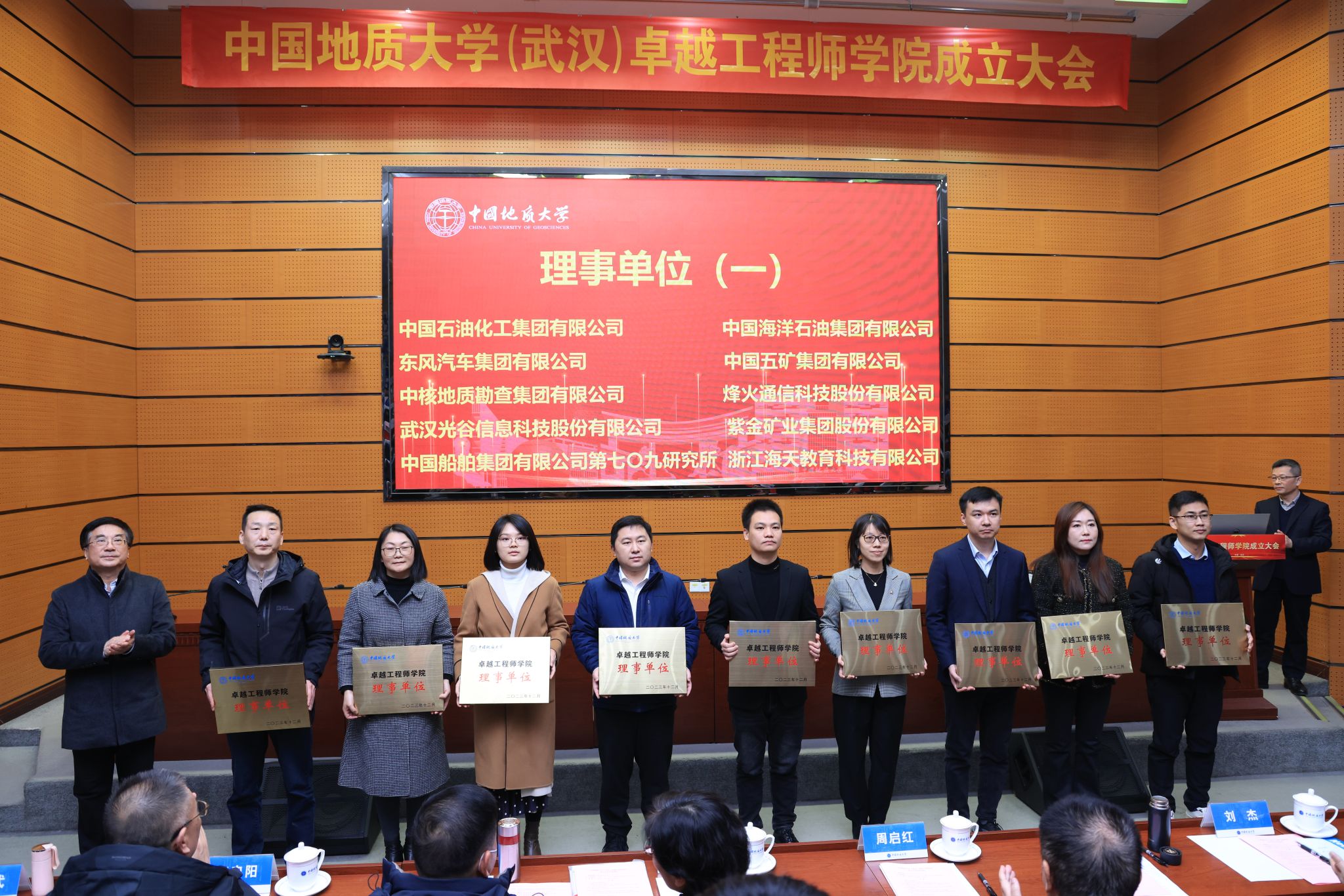 成立大會后,卓越工程師學院第一屆理事會第一次全體會議召開,審議通過了《中國地質大學(武漢)卓越工程師學院理事會章程》《中國地質大學(武漢)卓越工程師學院第一屆理事會單位名單》《中國地質大學(武漢)卓越工程師學院第一屆理事會名單》,卓越工程師學院實行理事會負責制,首批理事會成員包括中國地質調查局、中國石油天然氣集團有限公司、中國長江三峽集團有限公司、中國交通建設集團有限公司等20余家企業。(審核 陳華文)