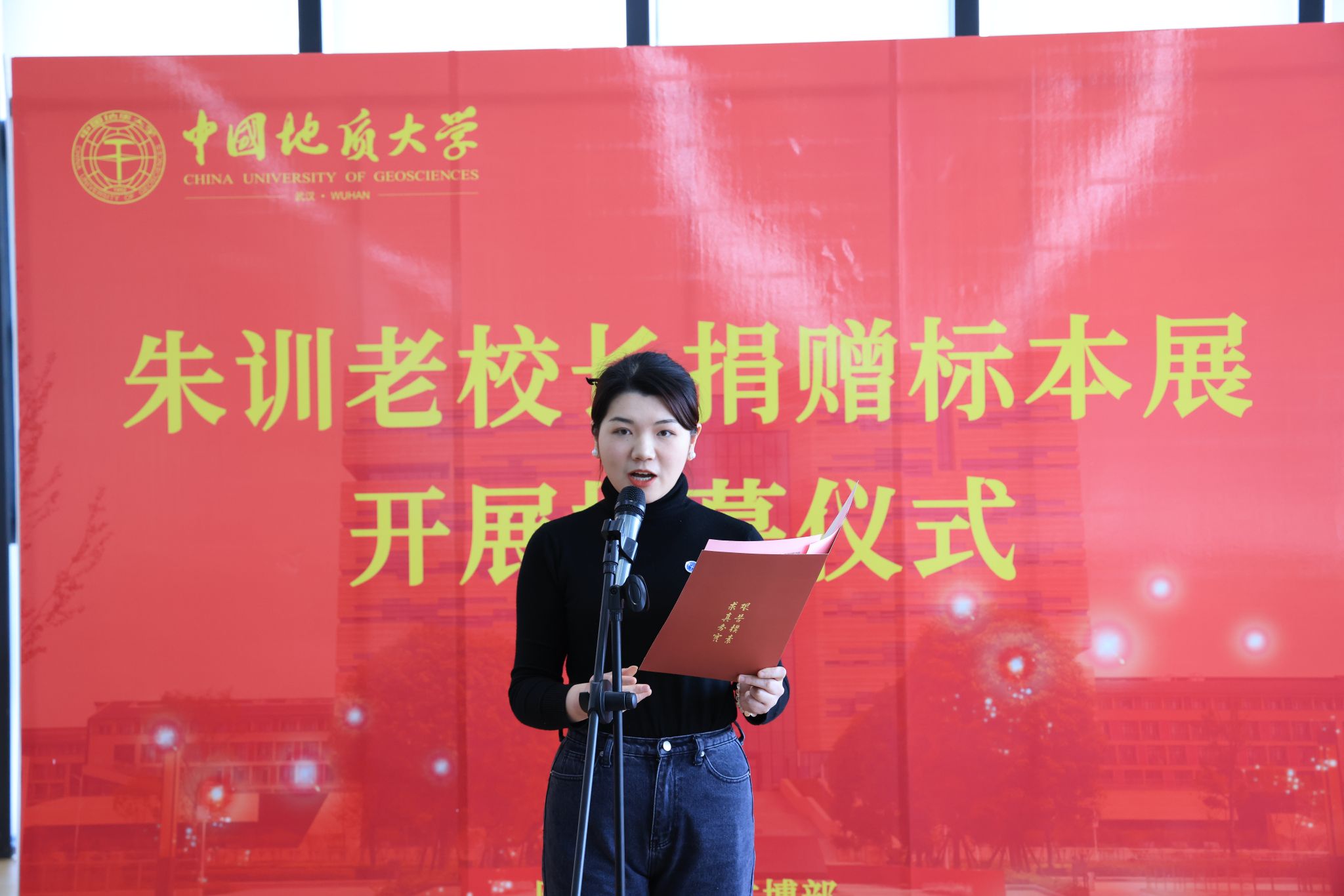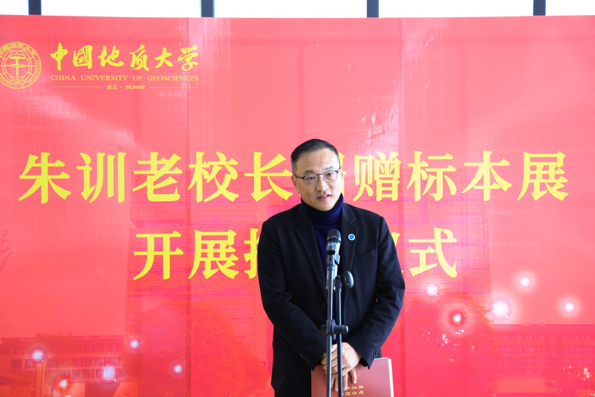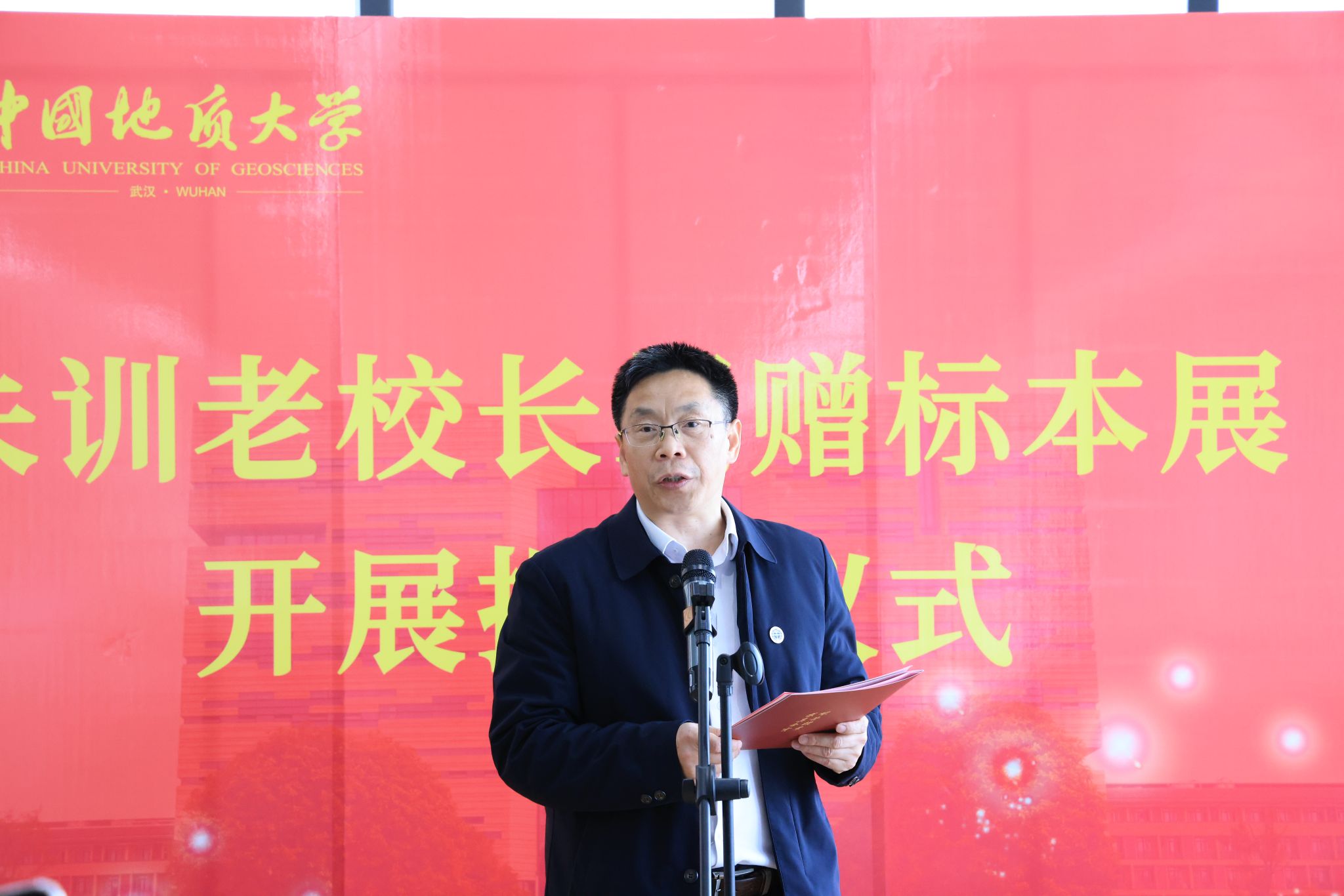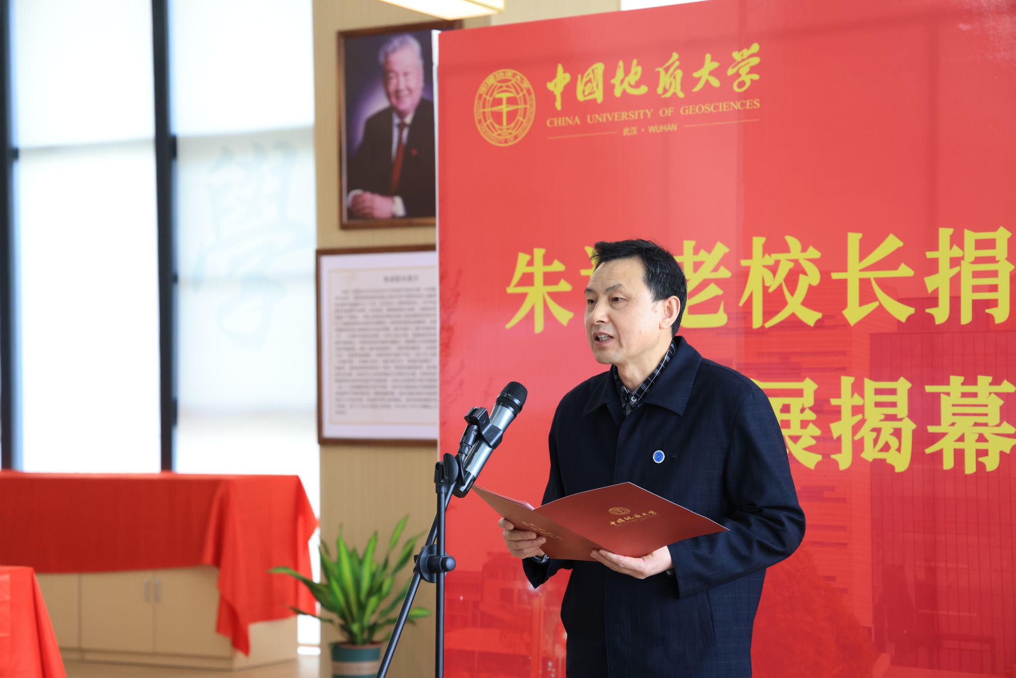 王甫在致辭中表示,學校在“朱訓書屋”舉行“朱訓老校長捐贈標本展”開展揭幕儀式,再次見證了老校長對學校建設發展的關心和對高等教育事業的責任感。作為地質勘探戰線的著名專家,老校長始終心懷國之大者,情系地礦教育事業,尤其對學校抱有深厚感情。此次標本展展出的巖礦石標本既凝聚了朱訓老校長的心血,又見證了他不同時期的工作足跡,反映出老校長實事求是的科學精神和對地質工作的赤誠熱愛。他指出,學校將把“朱訓書屋”建設成為科普教育、文化育人和科學家精神傳承的重要場所,希望全校廣大師生以朱訓老校長為學習榜樣,發揚“艱苦樸素、求真務實”的校訓精神,胸懷祖國、腳踏實地、勇攀高峰、追求卓越,為早日建成地球科學領域世界一流大學而努力奮斗。