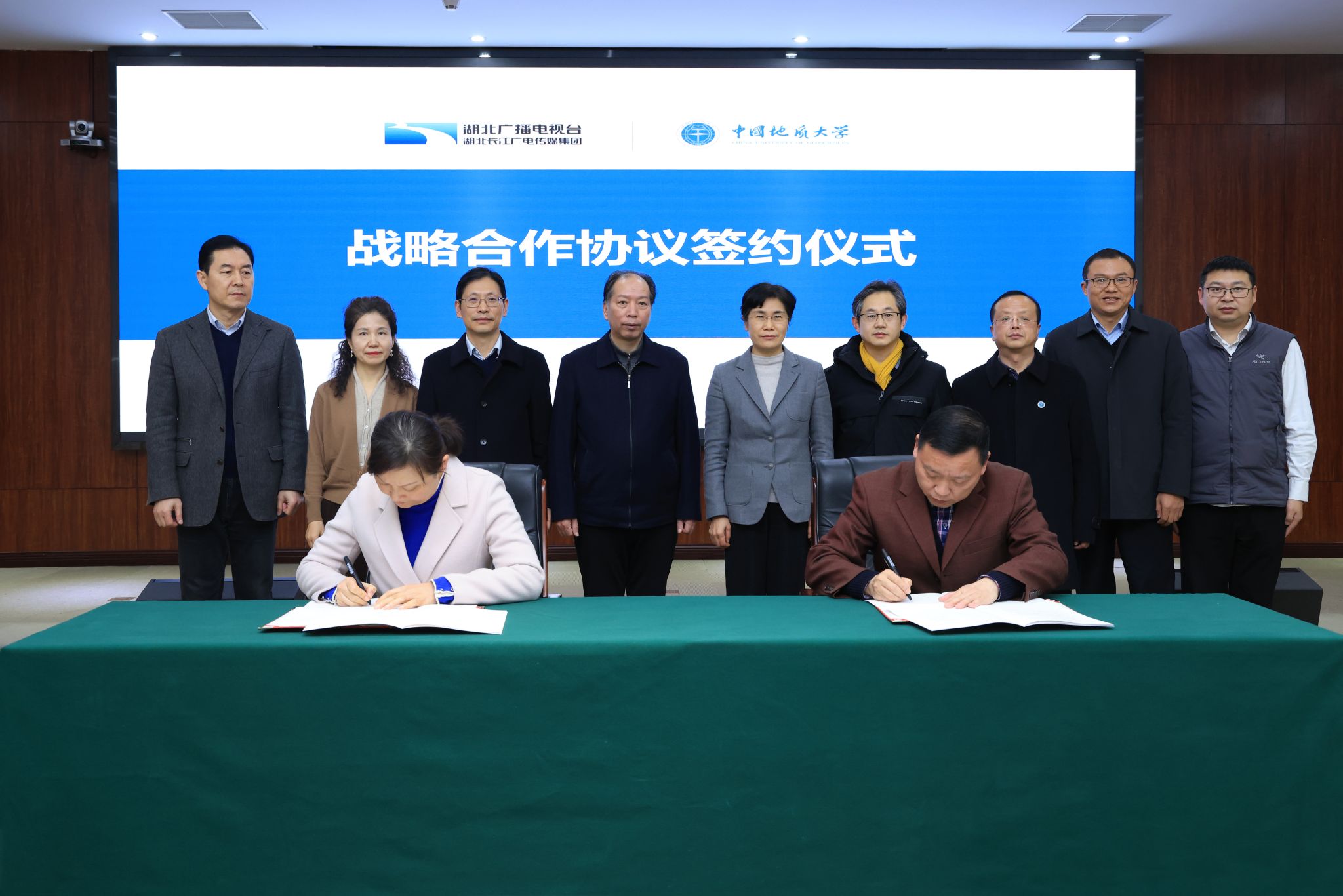 地大新聞網訊(記者王俊芳高雅)1月16日,我校與湖北廣播電視臺簽署戰略合作協議。湖北廣播電視臺黨委書記、臺長王彬,黨委委員、副總經理陳前,我校黨委書記黃曉玫,黨委副書記王林清,雙方相關單位負責人參加簽約儀式。王林清主持簽約儀式。