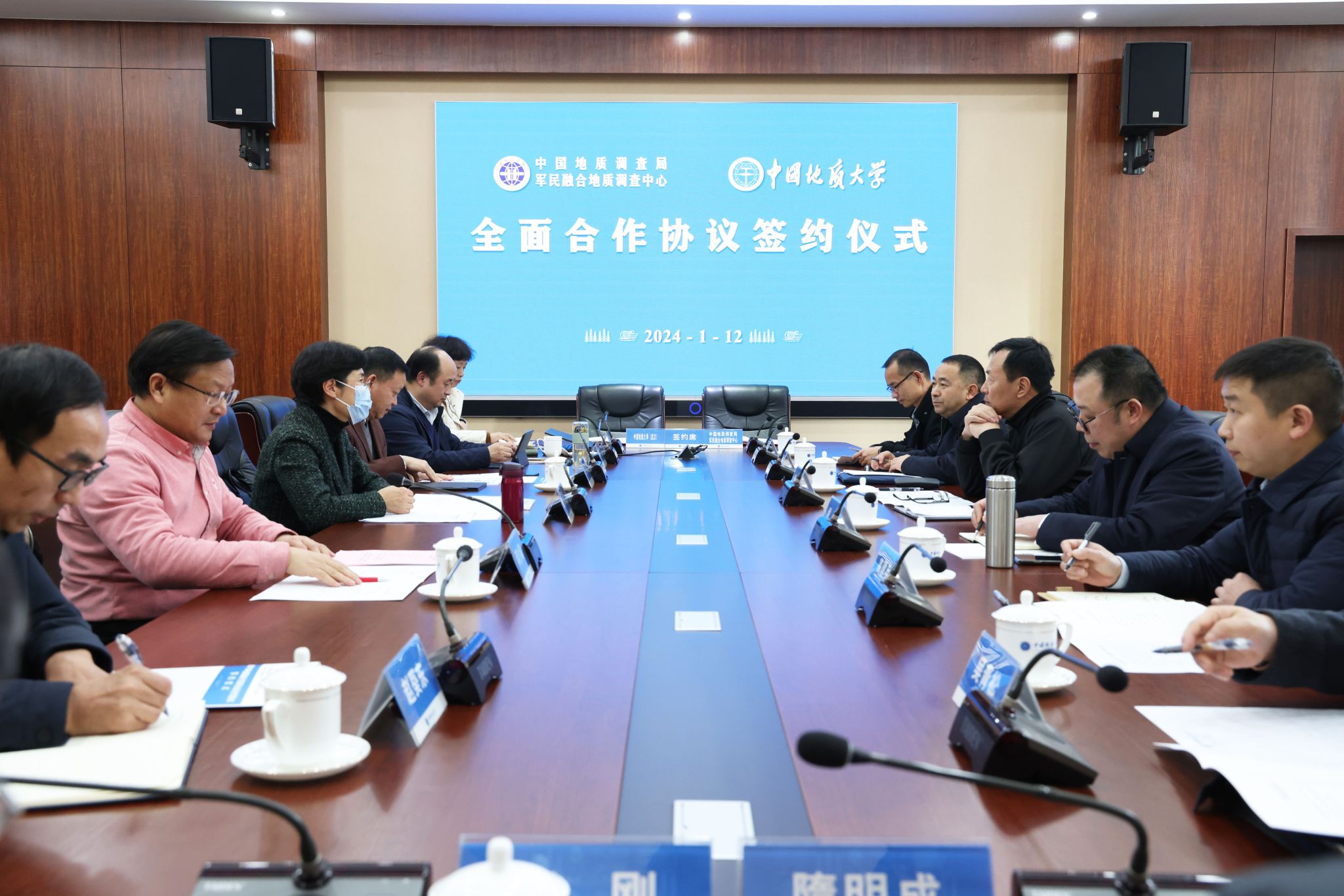 地大新聞網訊 (通訊員 何碩 攝影 孫彥欽)日前,我校與中國地質調查局軍民融合地質調查中心簽署全面合作協議。中心黨委書記韓忠、主任謝淵,我校黨委書記黃曉玫、黨委副書記王林清、校長助理蔣少涌,雙方相關單位負責人參加簽約儀式。蔣少涌主持簽約儀式。