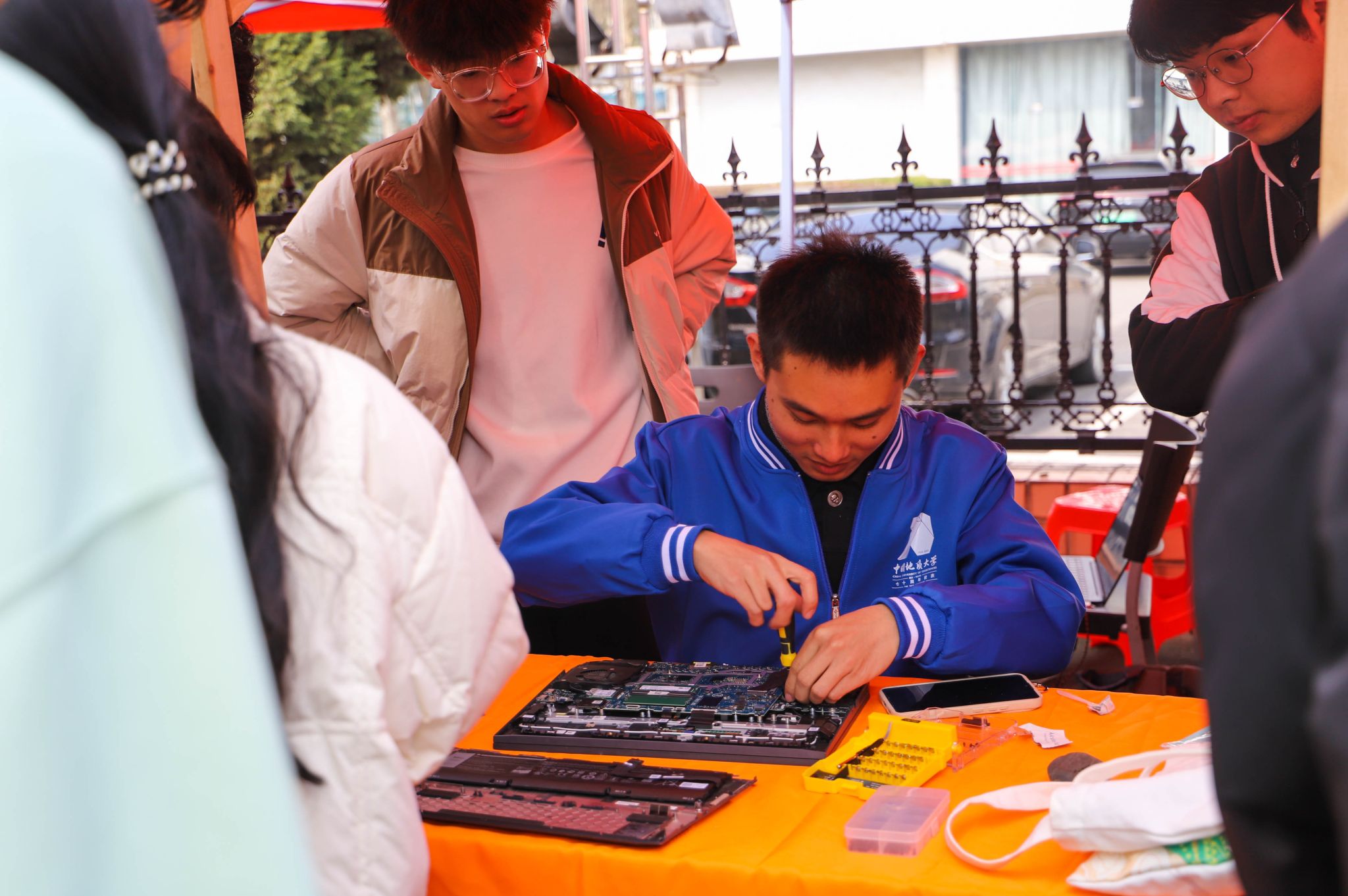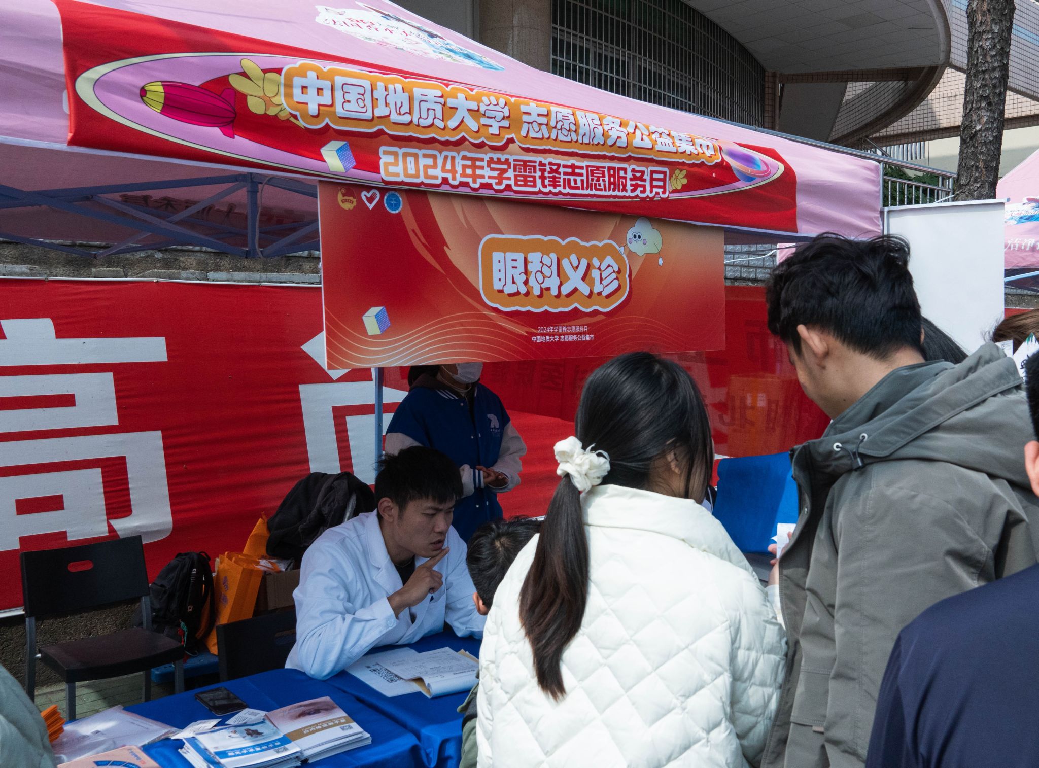 在活動現場,校內26個學生志愿服務團隊、5家管理與服務單位和校外8家企業融合自身優勢,貼近師生需求,創新服務和互動形式,籌備食堂公益立減金、汽車義診、中醫義診、眼科義診、簡歷門診等38項生活健康、科普宣傳、公益宣講、愛心義賣服務項目,通過“零距離”模式,為師生提供一系列“家門口”的服務。巧妙的集市設計和沉浸式的項目體驗贏得好評并吸引5000余人參與、體驗服務。