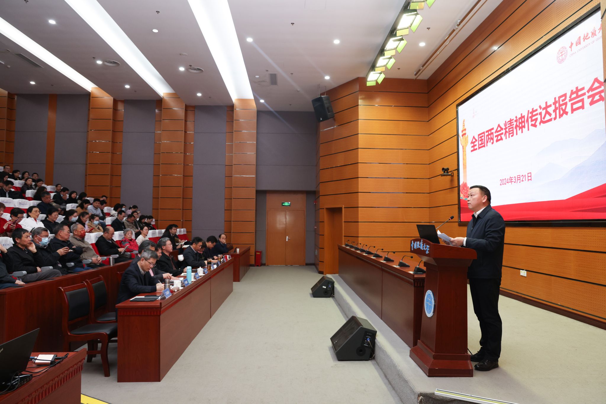 地大新聞網訊(記者 焦思勤)3月21日,我校以線上線下相結合的方式,召開全國兩會精神傳達報告會。會議邀請全國政協委員、機械與電子信息學院院長丁華鋒教授,全國政協委員、地球科學學院童金南教授分別作報告,傳達全國兩會精神。