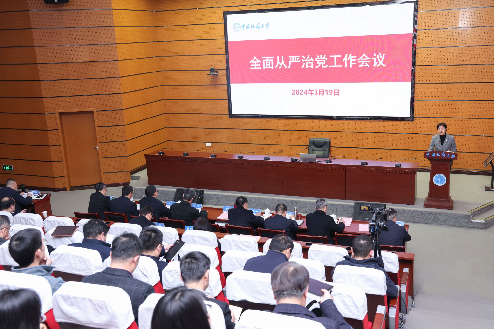 校黨委書記黃曉玫部署學校2024年全面從嚴治黨工作。她指出,要深入學習貫徹習近平總書記在二十屆中央紀委三次全會上的重要講話和全會精神,貫徹省紀委全會和2024 年教育系統全面從嚴治黨工作會議精神,從深刻認識重大意義、深刻領會豐富內涵、準確把握實踐要求三方面,深刻領悟習近平總書記關于黨的自我革命的重要思想。她表示,過去一年來,在黨中央、教育部黨組和湖北省委的堅強領導下,學校黨委團結帶領廣大師生員工,以習近平新時代中國特色社會主義思想為指導,深刻領悟“兩個確立”的決定性意義,增強“四個意識”、堅定“四個自信”、做到“兩個維護”,推動學習貫徹習近平新時代中國特色社會主義思想主題教育走深走實,成功召開學校第十三次黨代會,扎實推進全國黨建示范高校建設,持續完善高質量黨建工作體系,著力推進時代新人鑄魂工程,有效推動立德樹人根本任務落實落細,不斷強化正風肅紀,以自我革命精神推動學校全面從嚴治黨工作取得新進展新成效。