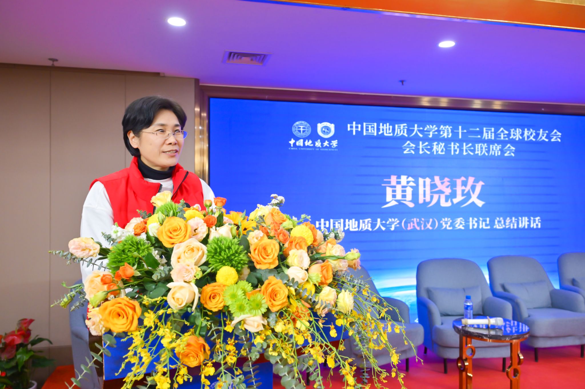 雷涯鄰講話。她說,廣大校友共同書寫了母校昨日的歷史,共同成就了母校今天的榮光,還將共同創(chuàng)造母校明天的璀璨前程。她表示,期待建立中國(guó)地質(zhì)大學(xué)校友會(huì)的多方溝通聯(lián)席機(jī)制,通過實(shí)行輪值主席制度,共同加強(qiáng)校友組織建設(shè),為后續(xù)南北兩地校友聯(lián)席會(huì)工作的開展暢通交流渠道、搭建高效工作平臺(tái)。