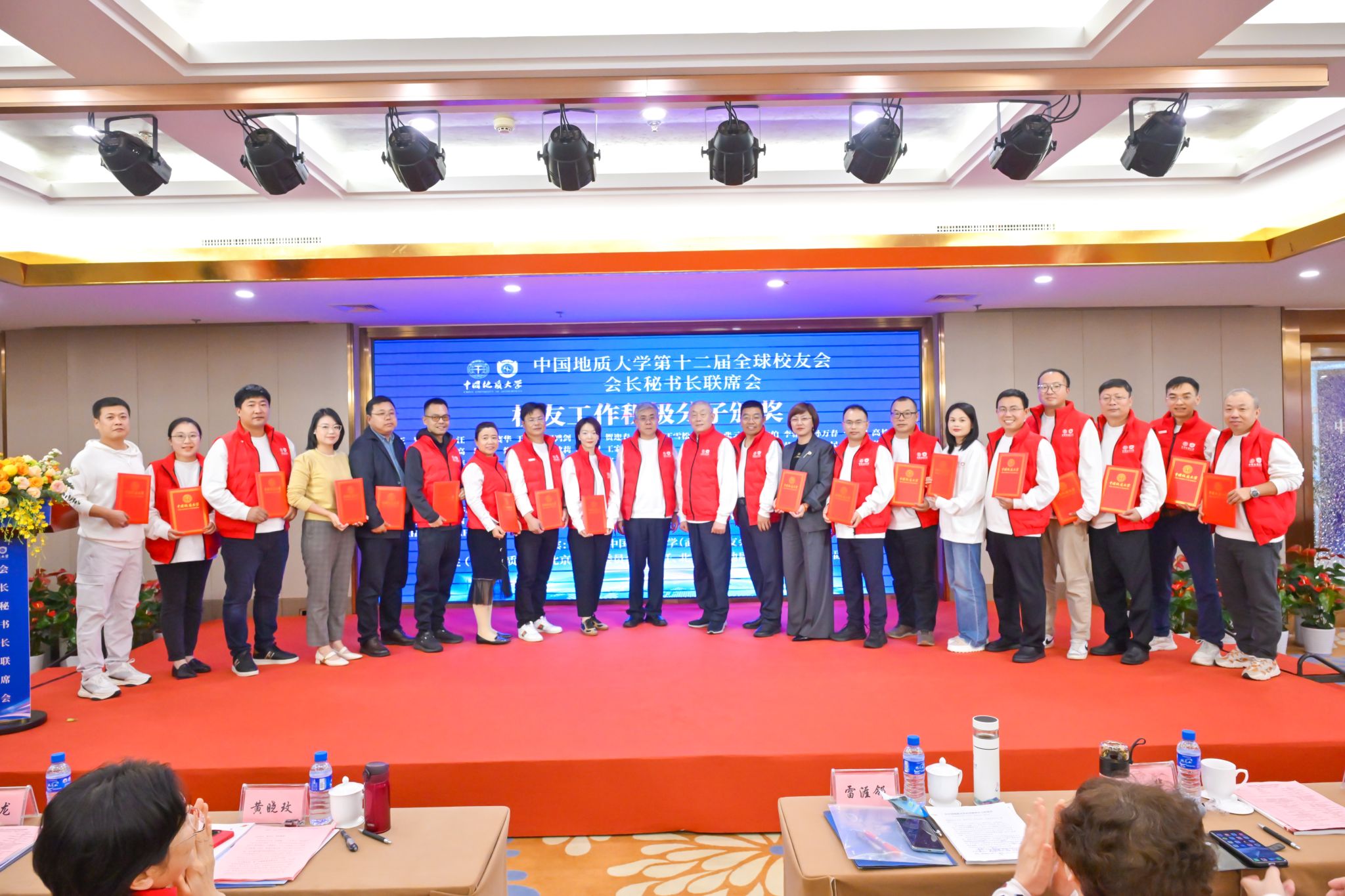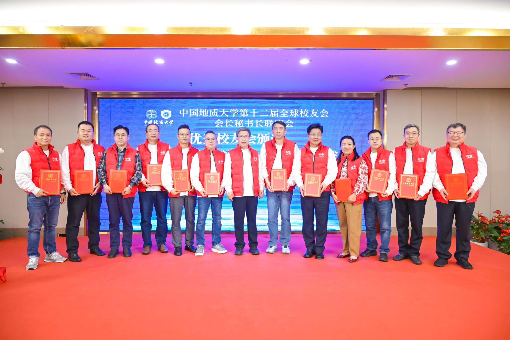 傅安洲宣讀《中國(guó)地質(zhì)大學(xué)校友會(huì)關(guān)于公布校友工作優(yōu)秀組織和個(gè)人的通知》。內(nèi)蒙古、遼寧、浙江、江西、山東、河南、湖北、湖南、廣西、川渝、云南、甘肅、福建、美國(guó)、加拿大校友會(huì)獲“優(yōu)秀校友工作分會(huì)”稱號(hào),106位校友會(huì)會(huì)長(zhǎng)、副會(huì)長(zhǎng)和秘書長(zhǎng)獲“優(yōu)秀校友工作者”稱號(hào),108位校友獲“校友工作積極分子”稱號(hào)。