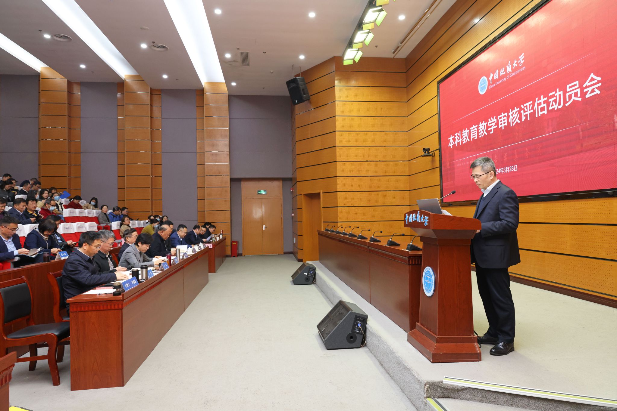 地大新聞網訊 (通訊員 饒煒龍 章帆 攝影 孫彥欽)3月28日,我校召開新一輪本科教育教學審核評估動員會,會議主題為“以審核評估為契機,全面提高本科人才自主培養能力”。在校校領導,黨委常委,校長助理,教指委委員,教學督導組成員,各管理服務機構主要負責人,各學院主要負責人、專業負責人、教學秘書、輔導員,教師代表,學生代表共300余人參加會議。副校長李建威主持會議。