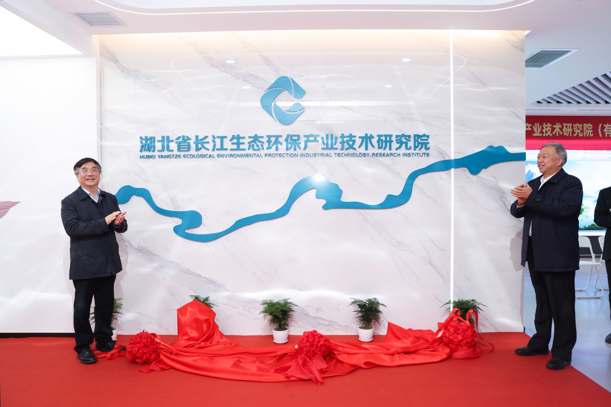 王焰新與黎苑楚共同為湖北省長江生態環保產業技術研究院揭牌。