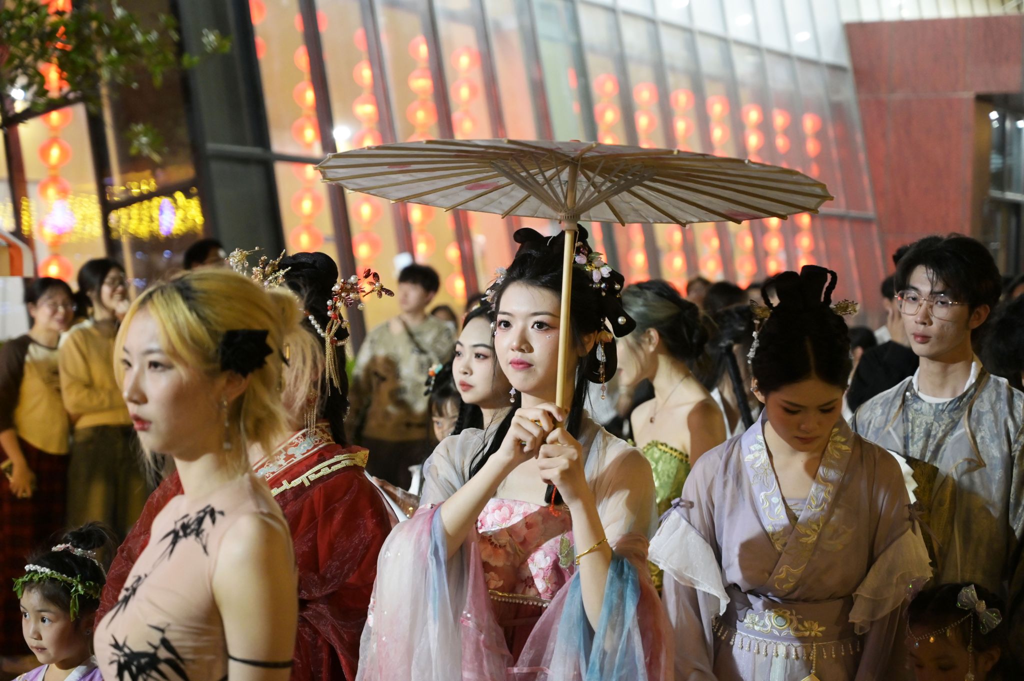 新增的“漢服巡游”環節,面向全校師生招募的50余名志愿者身著華服,手持花燈,款款而來,出場瞬間便點燃了現場的熱情?!斑@是一抹穿越時空的驚艷,漢服文化作為一種獨特的文化遺產,已經逐漸被大眾所了解和喜愛,這是文化自信的具體體現?!睗h服愛好者戴雅琪同學有感而發。