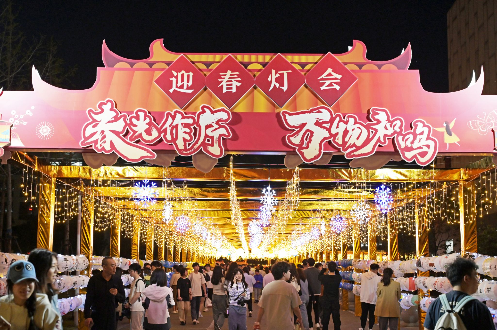 百花綻放,春和景明。晚上7點,露天劇場座無虛席,音樂秀場和主題演出依次上演。悠悠國風歌曲,訴說著對春日的眷戀;舞蹈、漢服秀、國樂演奏、詩詞吟誦……各類表演如繁花競艷,將傳統文化之美與春日之夢繪成一幅流動的畫卷。