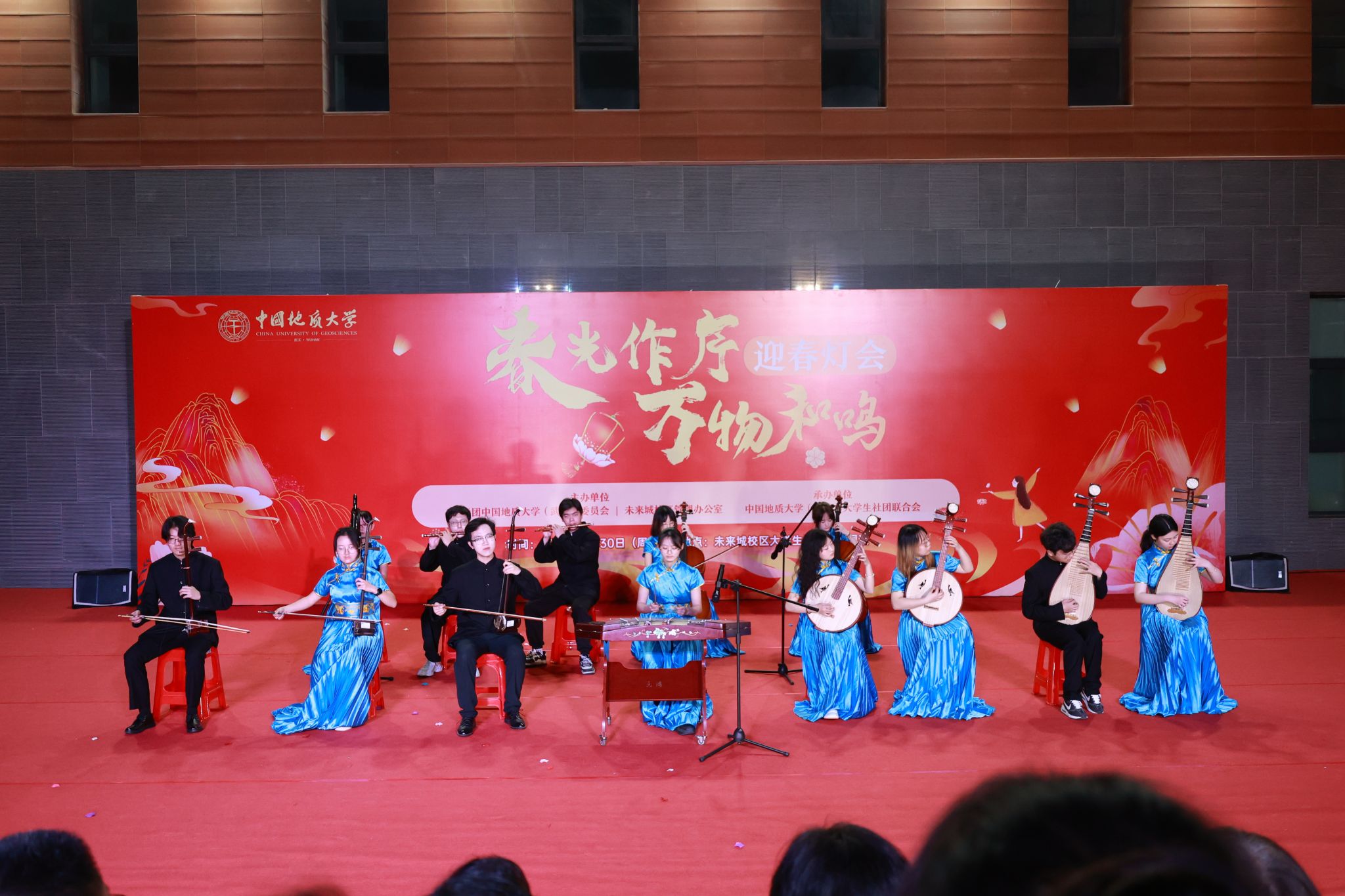 地大新聞網訊 (通訊員 李富旸 林函 劉明輝 攝影 孫彥欽 普坤 張一馳 王澤棟 劉源 )“闌珊處處,花燈盞盞,銀花火樹,共染蒼茫?!?月30日晚,“春光作序 萬物和鳴”迎春燈會在我校未來城校區舉辦,1500余盞原創手工花燈點亮校園,近萬名師生迎春賞燈、游園對詩,體驗傳統文化魅力。校黨委書記黃曉玫,黨委常委、組織部部長陳文武,本科生院(黨委學工部)、研究生院(黨委研工部)、未來城校區管理辦公室、圖書檔案與文博部、校團委等職能部門負責人,未來城入駐單位負責人參加活動。