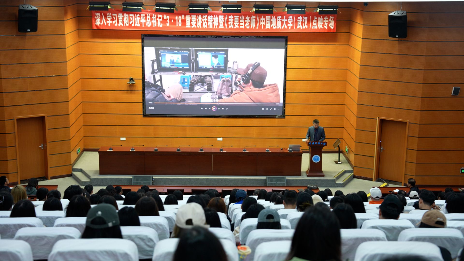 地大新聞網訊(記者 梁睿華 許小康 攝影 王誨)近日,全國首部思政課教師題材電影《我要當老師》點映活動在我校舉行。學校相關部門負責同志及師生代表300余人同上一堂鮮活生動的“大思政課”。