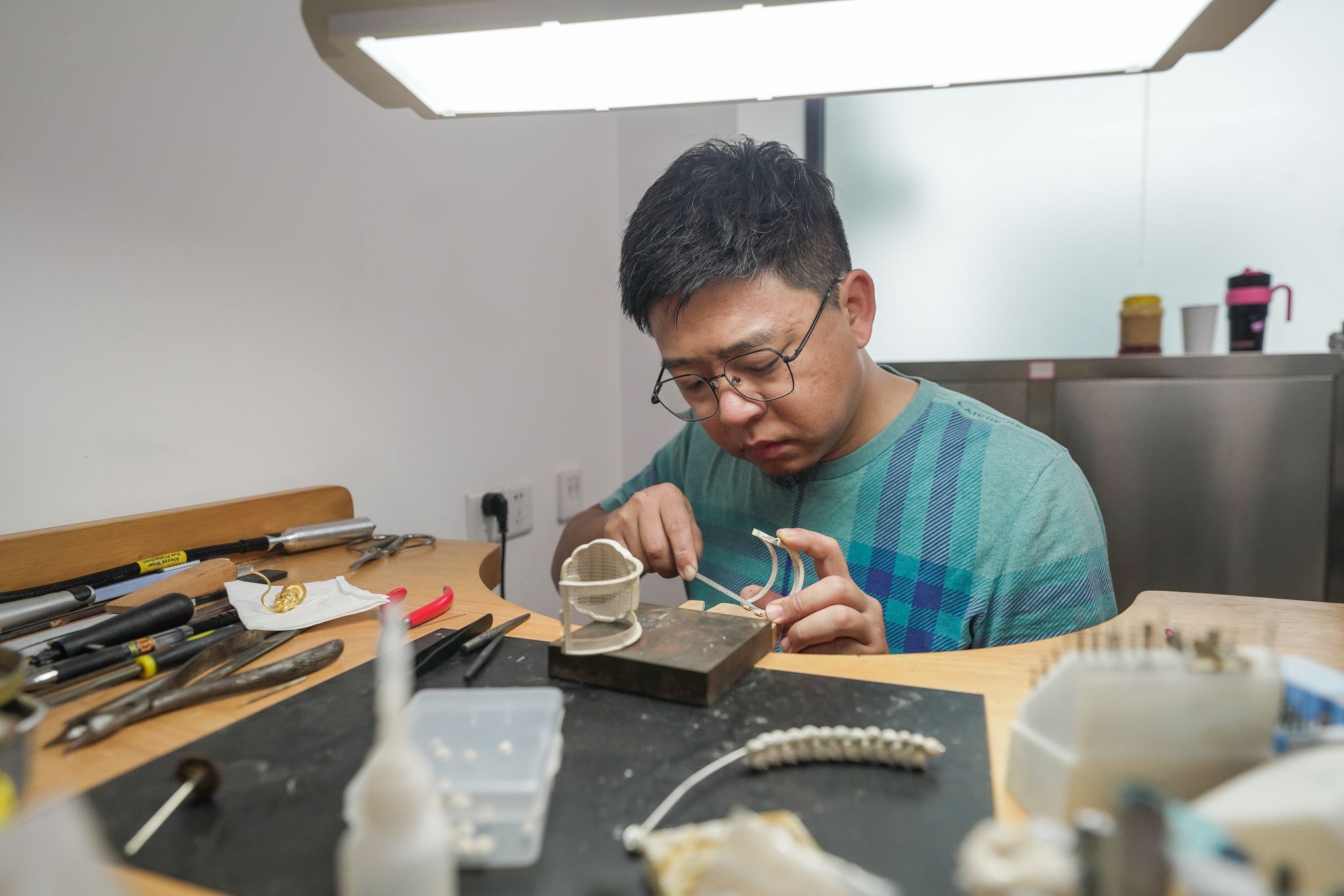 任開從事珠寶首飾專業(yè)20余年,也見證了珠寶首飾專業(yè)在中國高等院校從無到有、從有到專的轉變過程。他常說:“首飾雖小,但也很大”。 “小”在于它點綴著人們的妝容,是最珍貴材料的體現(xiàn),是最精妙技藝的集合。“大”在于它承載了人們對一切美好的愿望和心靈的依托;是科學與藝術、材料與文化、物質與精神的結合。一件精美的珠寶首飾的誕生需要以下幾個步驟:靈感發(fā)掘,設計構思,材料備制,精工細作,表達呈現(xiàn)。每一步都是從業(yè)者凝聚無數(shù)心血的積累,是匠人精神的具體體現(xiàn)。作為21世紀珠寶首飾的創(chuàng)作者、教育者、傳承者,不僅要精通本專業(yè)所有知識,要有扎實的動手實踐能力,還要突破傳統(tǒng)手工藝的舊式傳承,將手工技藝中“只可意會不可言傳的”絕活和寶貴經(jīng)驗,用最直白的語言,毫無保留地傳授給眾多學生。任開將現(xiàn)代教育方法與師承授業(yè)相結合,心手相傳。十多年來,他培養(yǎng)出眾多優(yōu)秀學生,有些考入中央美術學院、英國皇家藝術學院等國內(nèi)外著名院校繼續(xù)深造,有些成為當代知名設計師或藝術創(chuàng)作者,有些進入國內(nèi)專業(yè)院校任職,將知識和經(jīng)驗繼續(xù)傳承下去。