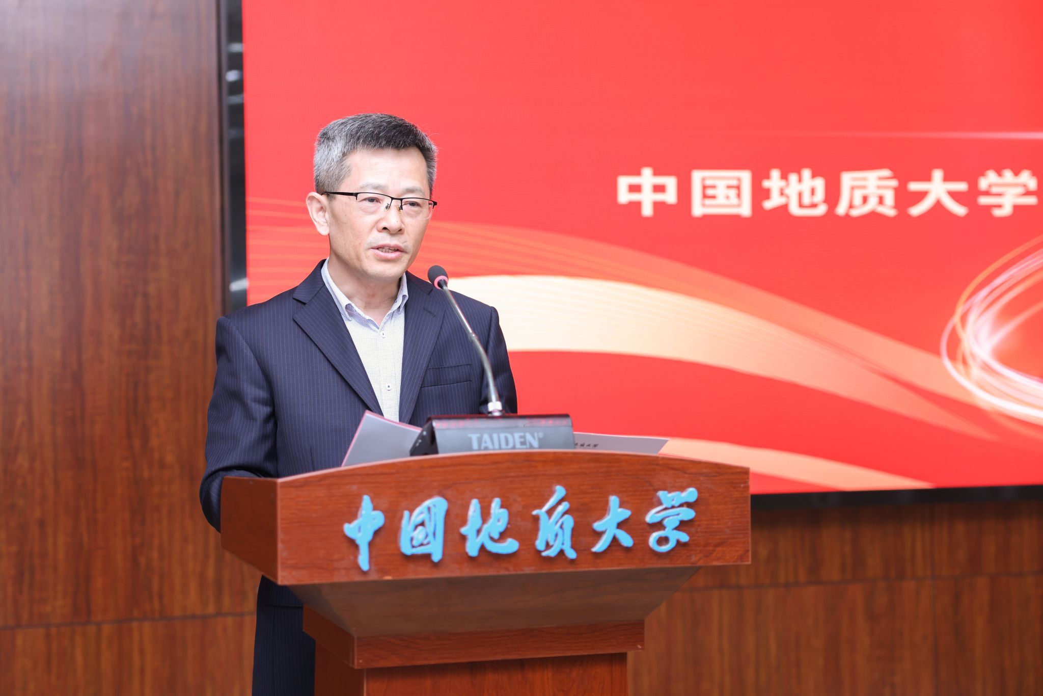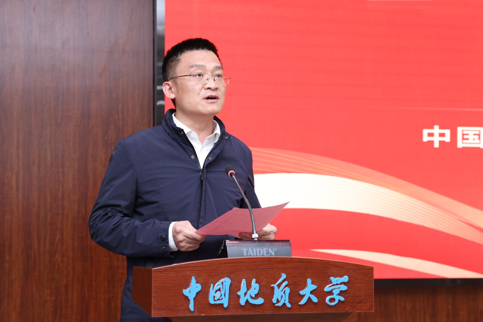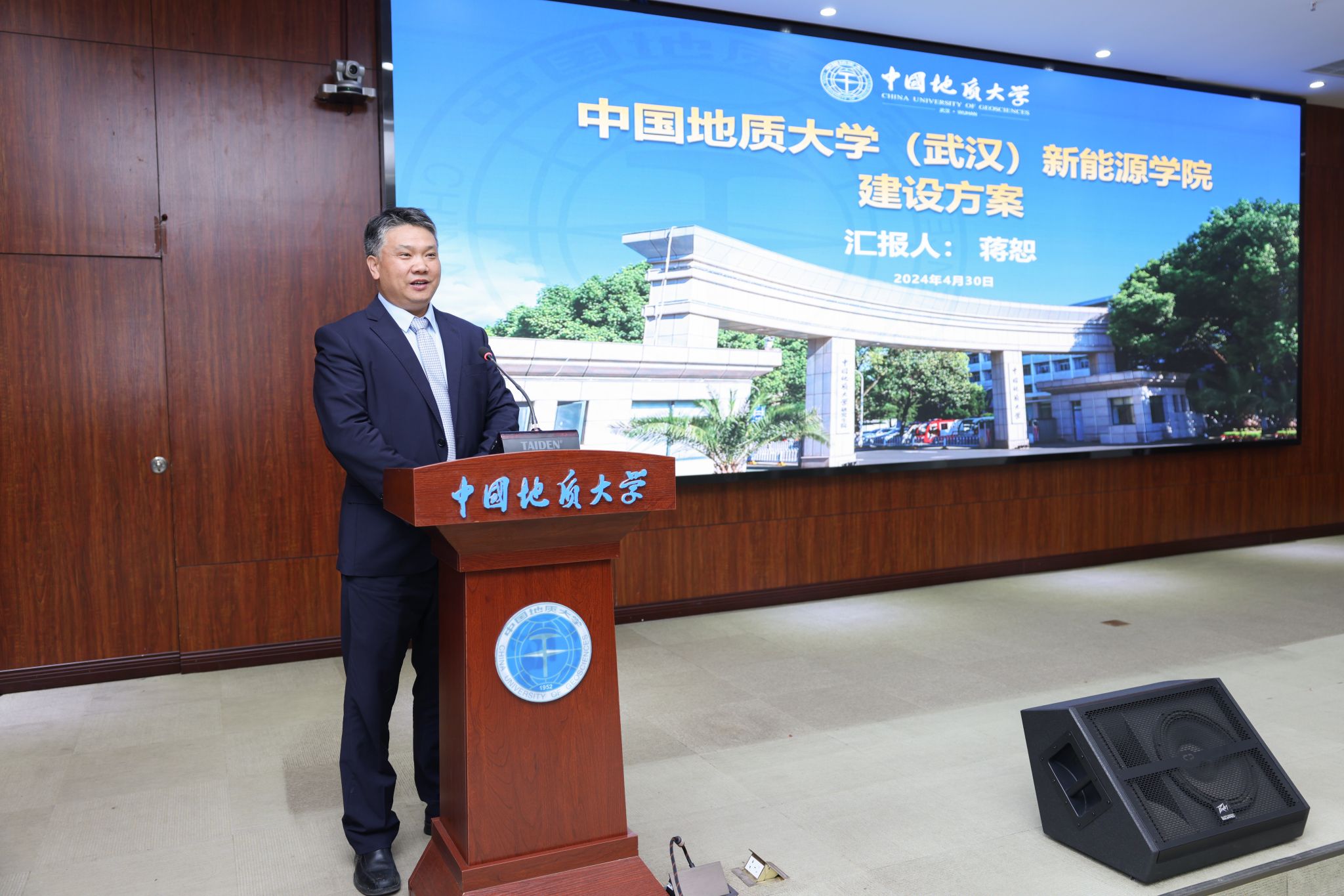 副校長李建威宣讀《中共中國地質大學(武漢)委員會關于成立新能源學院的通知》。