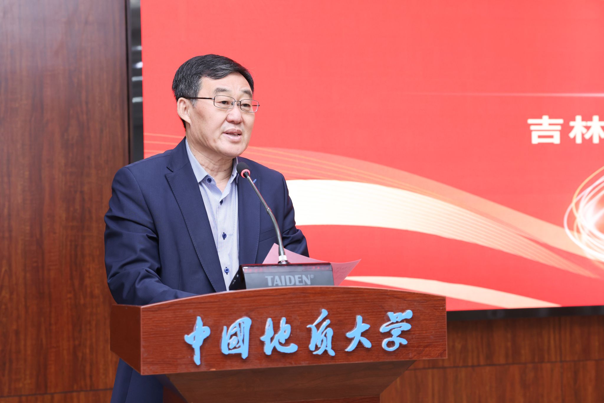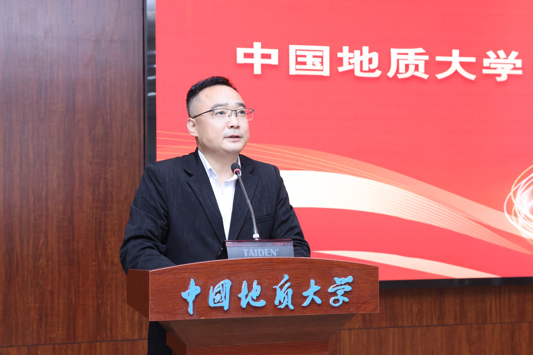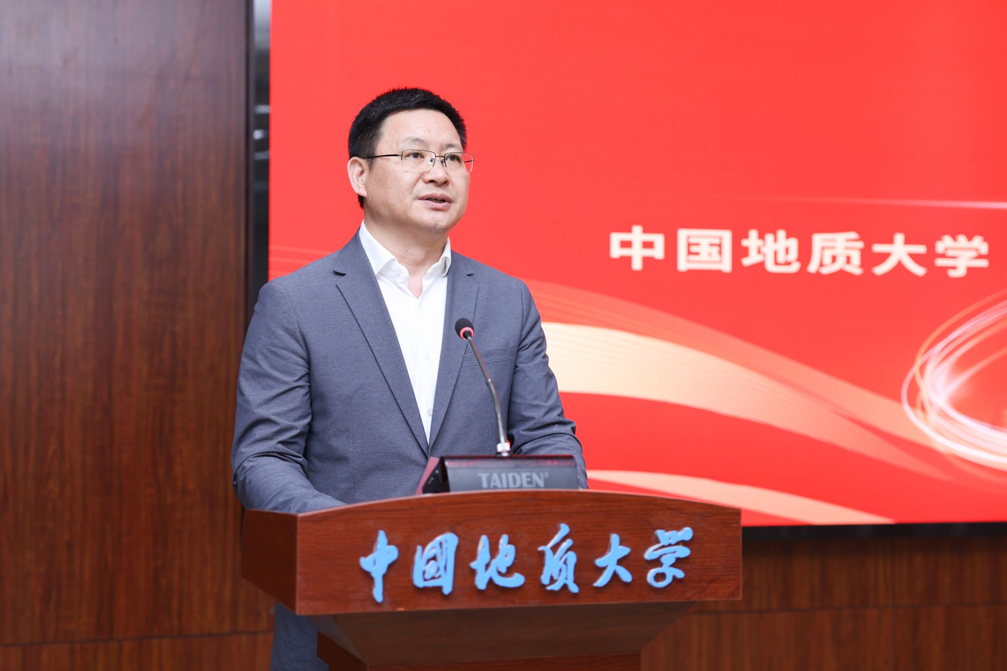 副校長李建威宣讀《中共中國地質大學(武漢)委員會關于成立新能源學院的通知》。